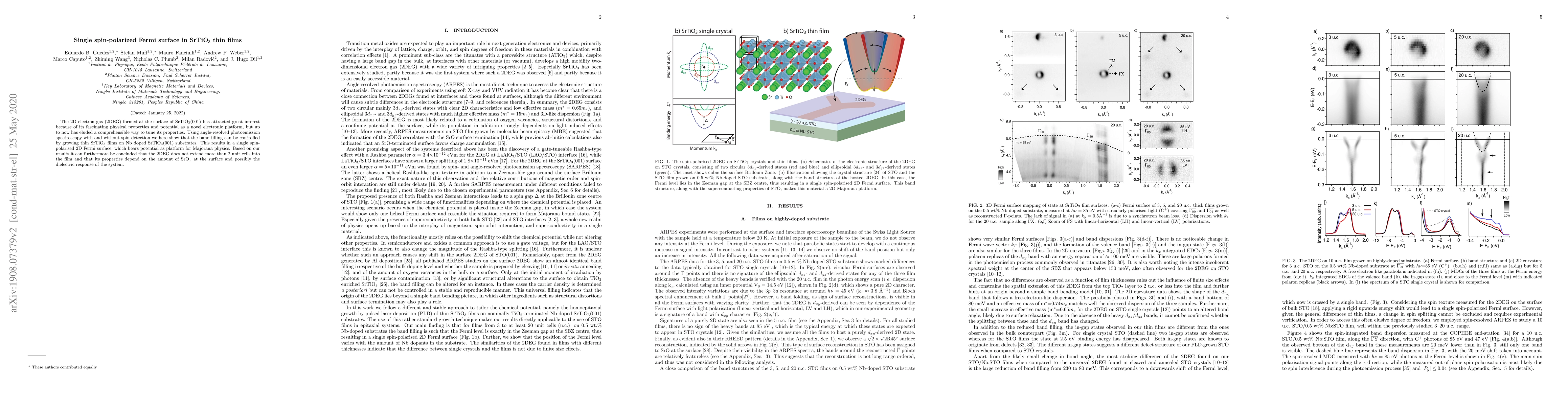 The 2D electron gas (2DEG) formed at the surface of SrTiO$_3$(001) has attracted great interest because of its fascinating physical properties and potential as a novel electronic platform, but up to now has eluded a comprehensible way to tune its properties. Using angle-resolved photoemission spectroscopy with and without spin detection we here show that the band filling can be controlled by growing thin SrTiO$_3$ films on Nb doped SrTiO$_3$(001) substrates. This results in a single spin-polarised 2D Fermi surface, which bears potential as platform for Majorana physics. Based on our results it can furthermore be concluded that the 2DEG does not extend more than 2 unit cells into the film and that its properties depend on the amount of SrO$_x$ at the surface and possibly the dielectric response of the system.