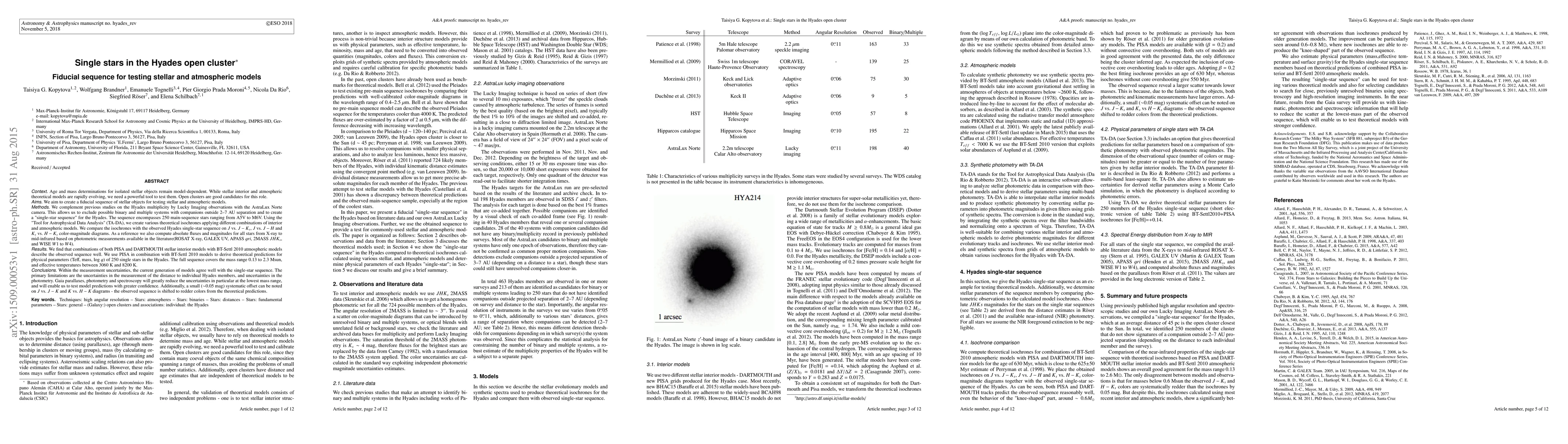 This paper presents a refined "single-star sequence" for the Hyades cluster, derived from Lucky Imaging observations, which excludes binary and multiple systems. The sequence, encompassing 250 main-sequence stars, is used to test stellar and atmospheric models, finding that PISA and DARTMOUTH interior models paired with BT-Settl 2010 atmospheric models provide the best fit.