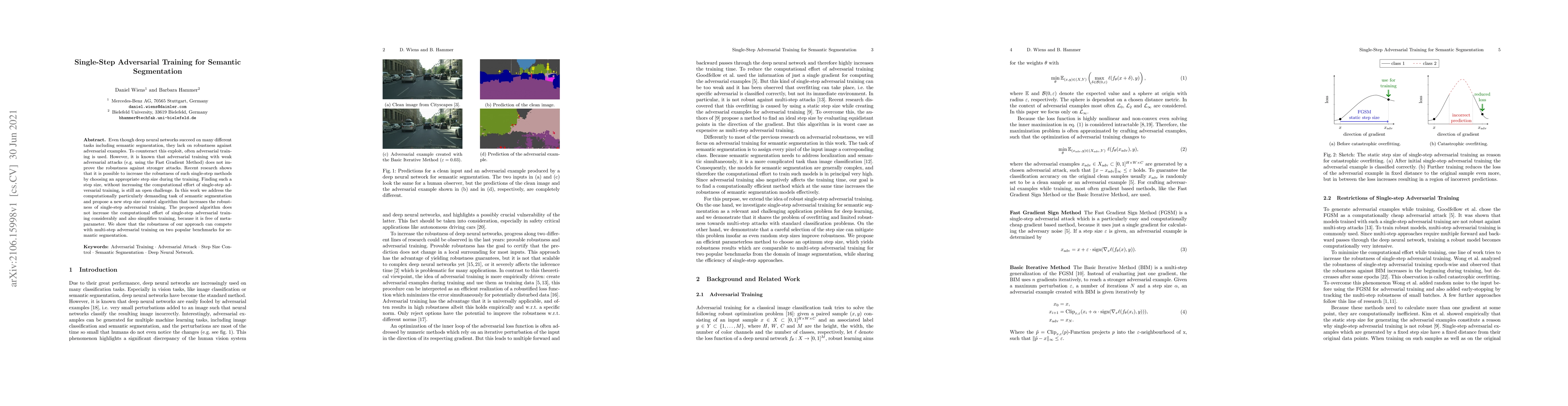 This paper proposes a new step size control algorithm for single-step adversarial training to enhance the robustness of deep neural networks for semantic segmentation without significantly increasing computational effort. The method achieves competitive robustness against stronger attacks compared to multi-step adversarial training.