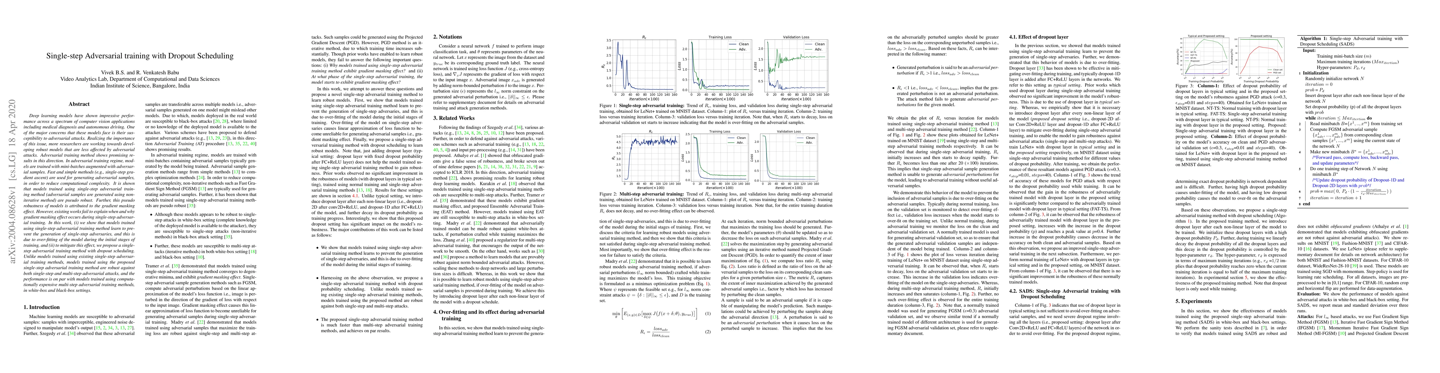 Deep learning models have shown impressive performance across a spectrum of computer vision applications including medical diagnosis and autonomous driving. One of the major concerns that these models face is their susceptibility to adversarial attacks. Realizing the importance of this issue, more researchers are working towards developing robust models that are less affected by adversarial attacks. Adversarial training method shows promising results in this direction. In adversarial training regime, models are trained with mini-batches augmented with adversarial samples. Fast and simple methods (e.g., single-step gradient ascent) are used for generating adversarial samples, in order to reduce computational complexity. It is shown that models trained using single-step adversarial training method (adversarial samples are generated using non-iterative method) are pseudo robust. Further, this pseudo robustness of models is attributed to the gradient masking effect. However, existing works fail to explain when and why gradient masking effect occurs during single-step adversarial training. In this work, (i) we show that models trained using single-step adversarial training method learn to prevent the generation of single-step adversaries, and this is due to over-fitting of the model during the initial stages of training, and (ii) to mitigate this effect, we propose a single-step adversarial training method with dropout scheduling. Unlike models trained using existing single-step adversarial training methods, models trained using the proposed single-step adversarial training method are robust against both single-step and multi-step adversarial attacks, and the performance is on par with models trained using computationally expensive multi-step adversarial training methods, in white-box and black-box settings.