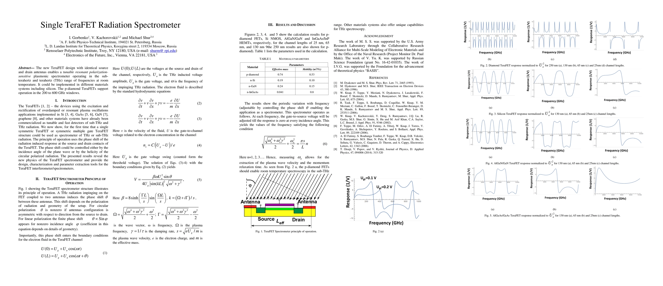 The new TeraFET design with identical source and drain antennas enables a tunable resonant polarization-sensitive plasmonic spectrometer operating in the sub-terahertz and terahertz (THz) range of frequencies at room temperature. It could be implemented in different materials systems including silicon. The p-diamond TeraFETs support operation in the 200 to 600 GHz windows.