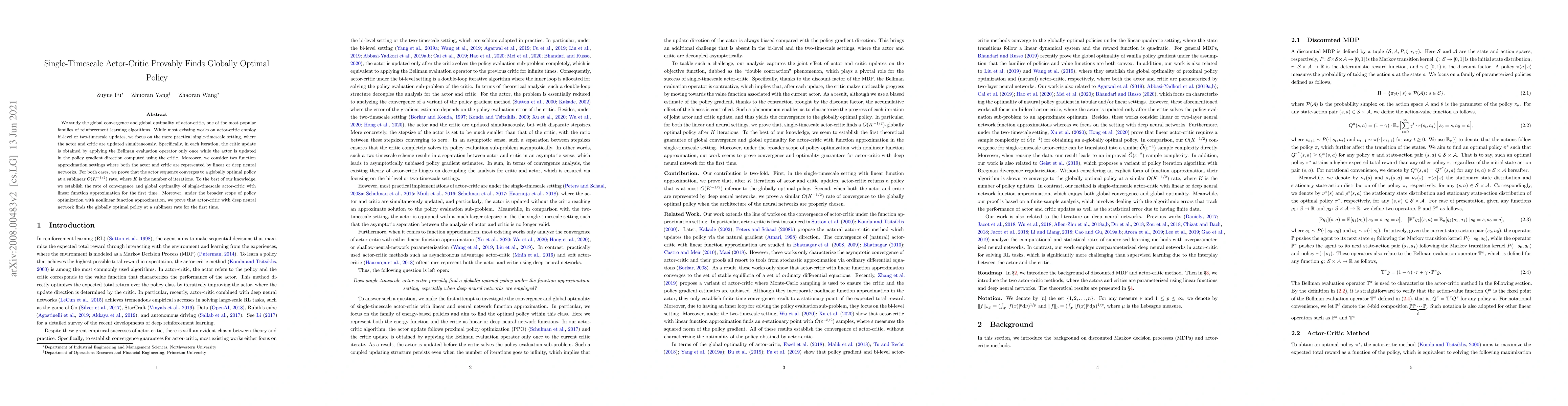 This paper investigates the global convergence and optimality of single-timescale actor-critic reinforcement learning algorithms. It proves that under linear or deep neural network function approximations, the actor sequence converges to a globally optimal policy at a sublinear rate, establishing first-time results for both settings.