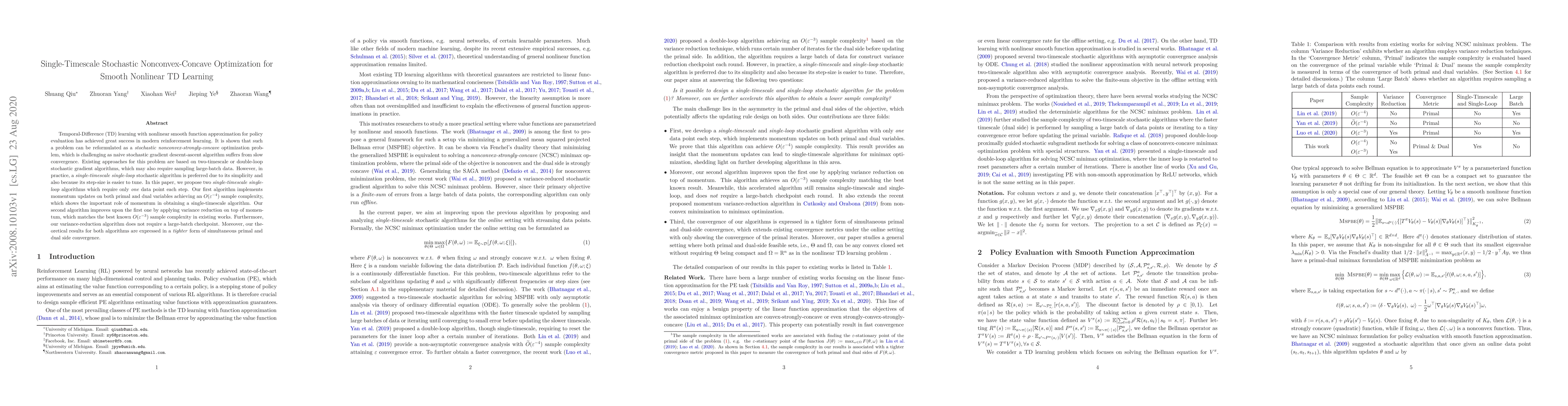 This paper proposes two single-timescale stochastic optimization algorithms for smooth nonlinear TD learning, achieving improved convergence rates. The first algorithm uses momentum to reach $O(\varepsilon^{-4})$ sample complexity, while the second applies variance reduction to match the best-known $O(\varepsilon^{-3})$ sample complexity without requiring large-batch data.