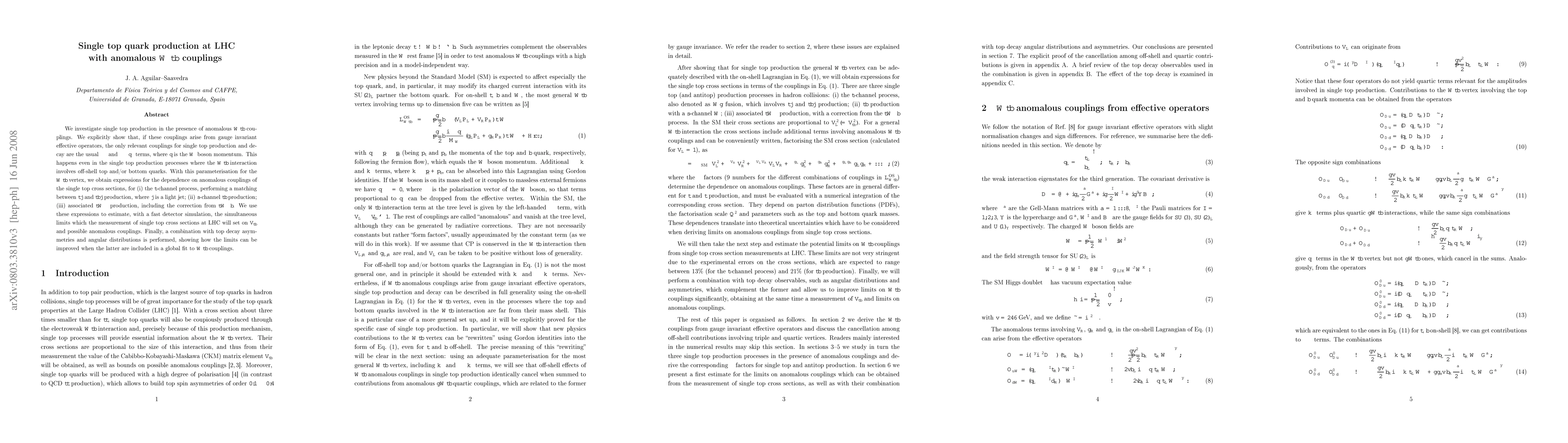 We investigate single top production in the presence of anomalous Wtb couplings. We explicitly show that, if these couplings arise from gauge invariant effective operators, the only relevant couplings for single top production and decay are the usual gamma^mu and sigma^mu nu q_nu terms, where q is the W boson momentum. This happens even in the single top production processes where the Wtb interaction involves off-shell top and/or bottom quarks. With this parameterisation for the Wtb vertex, we obtain expressions for the dependence on anomalous couplings of the single top cross sections, for (i) the t-channel process, performing a matching between tj and t bbar j production, where j is a light jet; (ii) s-channel t bbar production; (iii) associated tW- production, including the correction from tW- bbar. We use these expressions to estimate, with a fast detector simulation, the simultaneous limits which the measurement of single top cross sections at LHC will set on V_tb and possible anomalous couplings. Finally, a combination with top decay asymmetries and angular distributions is performed, showing how the limits can be improved when the latter are included in a global fit to Wtb couplings.