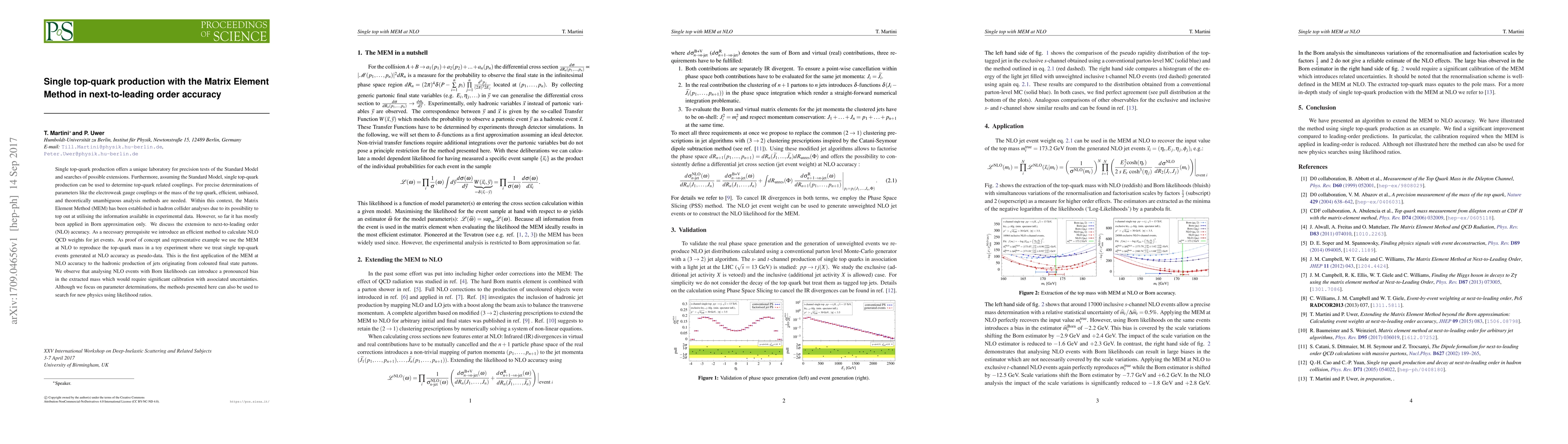 Researchers demonstrate the application of the Matrix Element Method to analyze single top-quark production at next-to-leading order accuracy, enabling more precise determinations of parameters like the top quark mass.