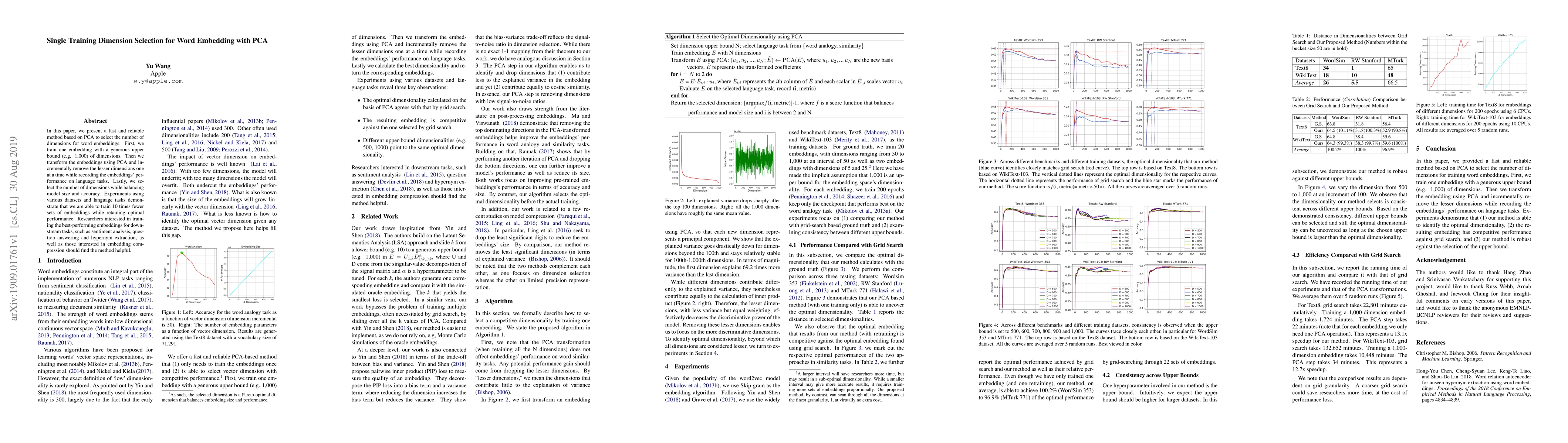 In this paper, we present a fast and reliable method based on PCA to select the number of dimensions for word embeddings. First, we train one embedding with a generous upper bound (e.g. 1,000) of dimensions. Then we transform the embeddings using PCA and incrementally remove the lesser dimensions one at a time while recording the embeddings' performance on language tasks. Lastly, we select the number of dimensions while balancing model size and accuracy. Experiments using various datasets and language tasks demonstrate that we are able to train 10 times fewer sets of embeddings while retaining optimal performance. Researchers interested in training the best-performing embeddings for downstream tasks, such as sentiment analysis, question answering and hypernym extraction, as well as those interested in embedding compression should find the method helpful.