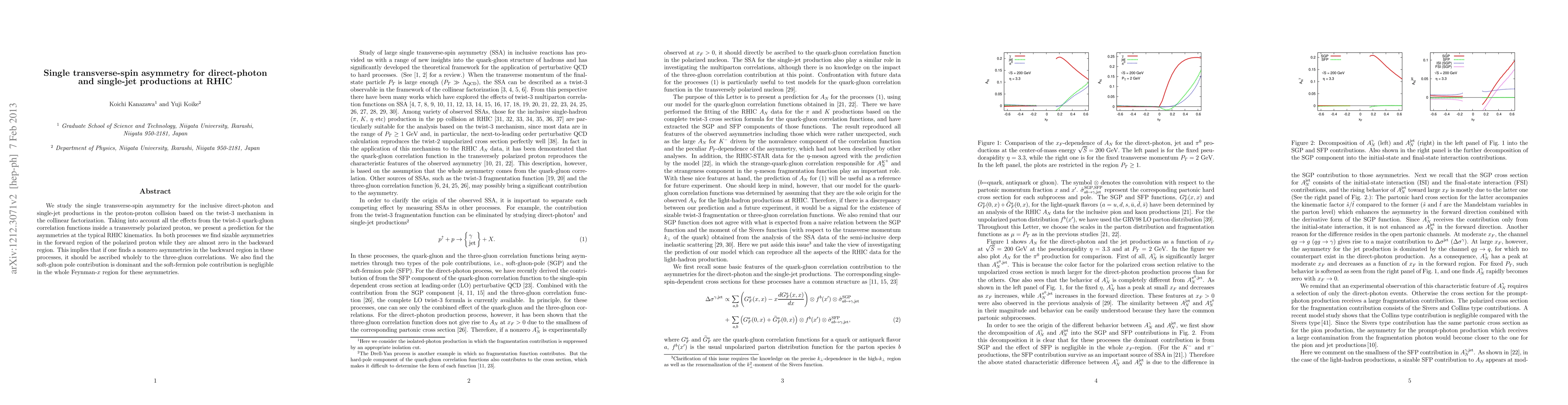 This paper investigates the single transverse-spin asymmetry in direct-photon and single-jet productions in proton-proton collisions at RHIC, attributing the effects to twist-3 mechanisms. The study predicts sizable asymmetries in the forward region of the polarized proton, with negligible asymmetries in the backward region, indicating that any nonzero asymmetries there would be due to three-gluon correlations.