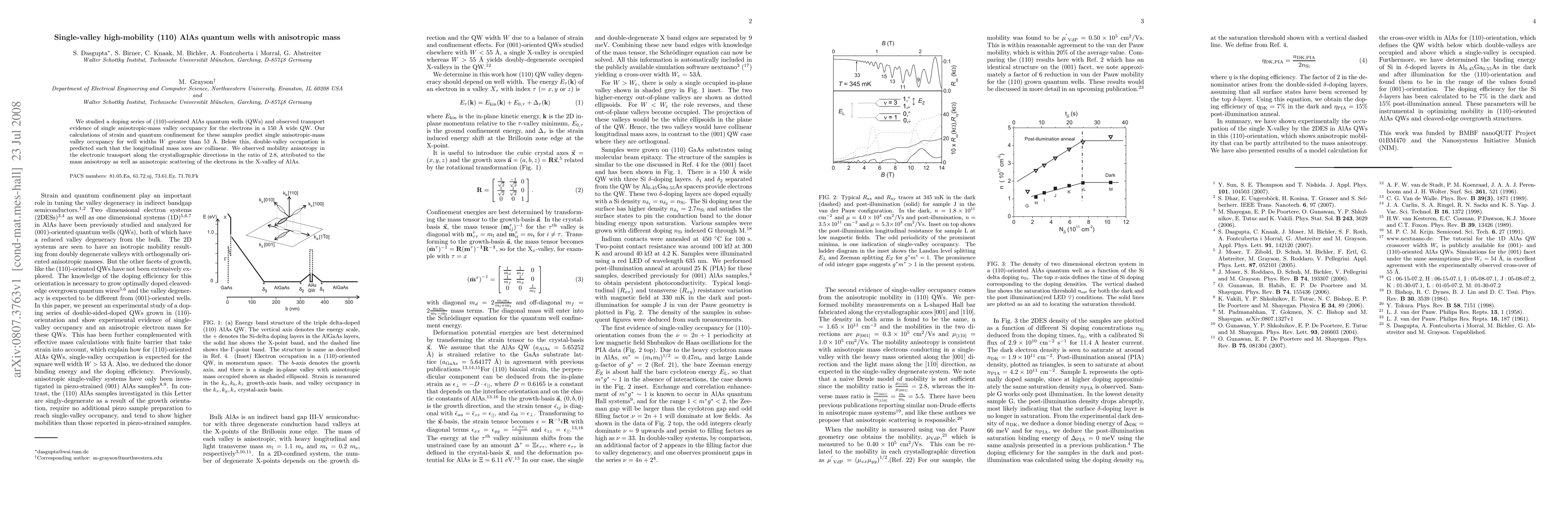 This study investigates (110)-oriented AlAs quantum wells and finds single anisotropic-mass valley occupancy for electrons in wells wider than 53 Å. Mobility anisotropy with a ratio of 2.8 along crystallographic directions is observed, attributed to mass anisotropy and anisotropic scattering.
