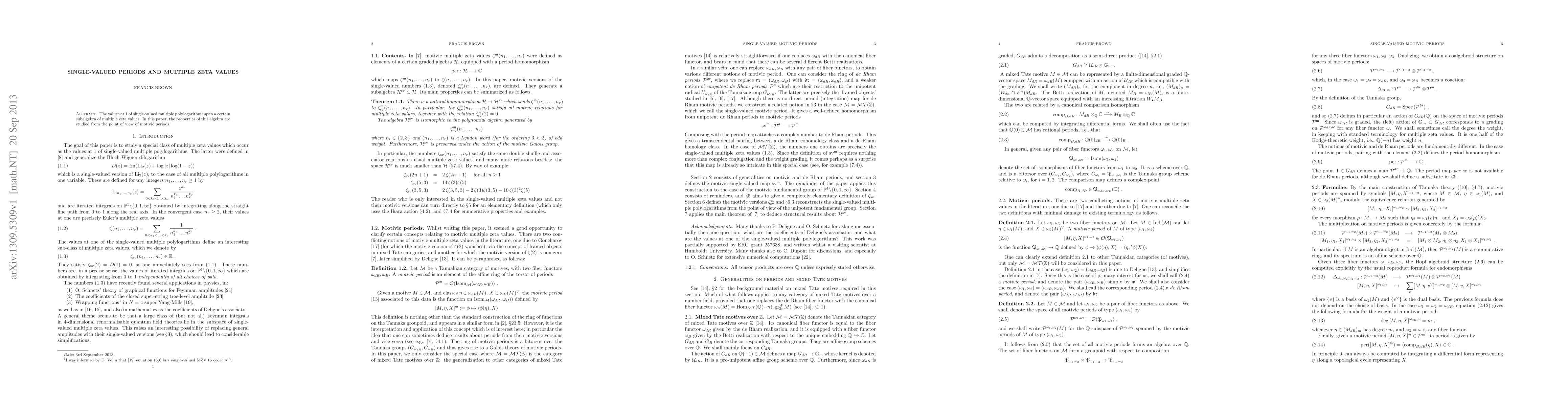 This paper investigates the properties of the subalgebra of multiple zeta values generated by single-valued multiple polylogarithms at 1, analyzing them through the lens of motivic periods. The focus is on understanding the algebraic structure and its implications.