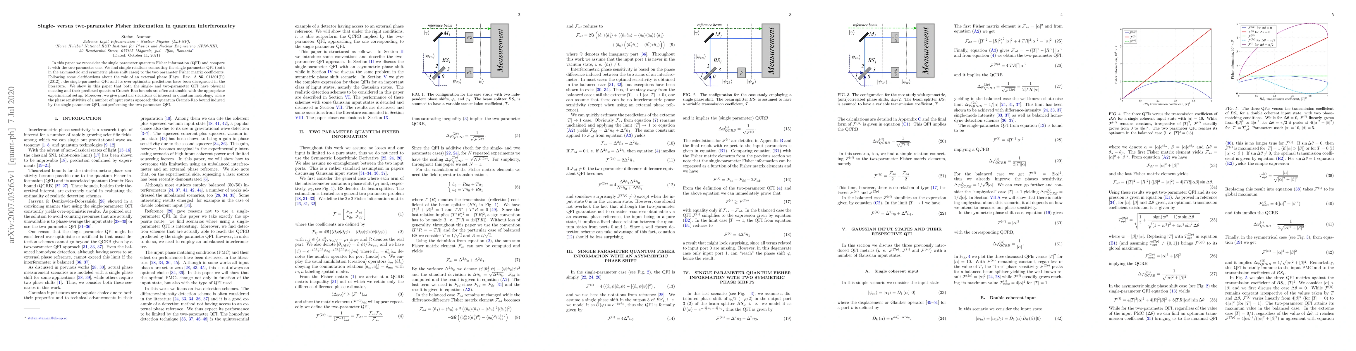 This paper compares single-parameter and two-parameter quantum Fisher information in quantum interferometry, demonstrating that both have physical significance and can attain quantum Cramér-Rao bounds under specific experimental conditions. It highlights scenarios where single-parameter sensitivities outperform the two-parameter approach.