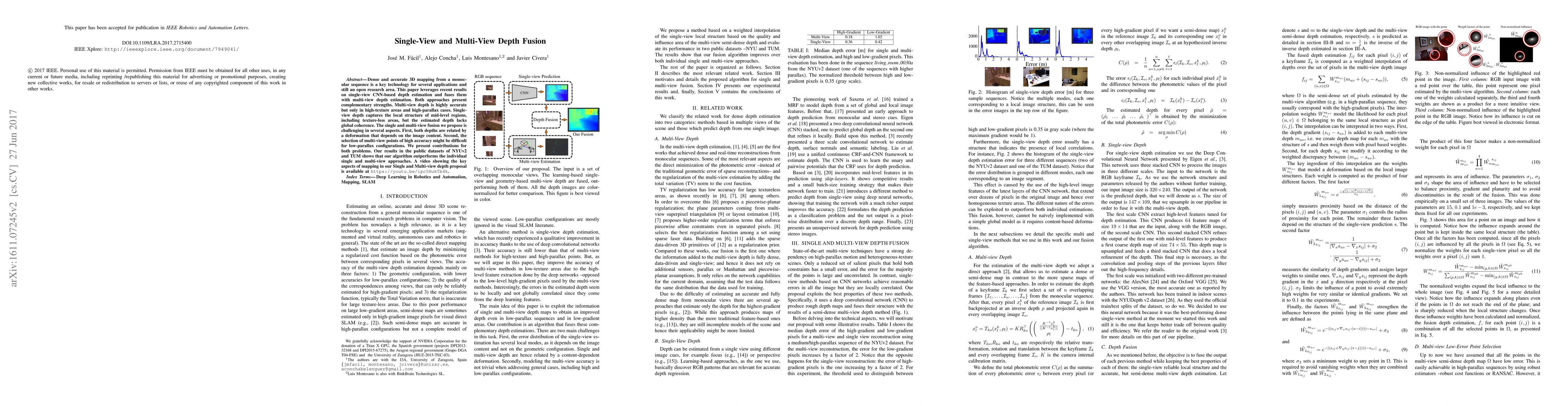 This paper proposes a method to fuse single-view CNN-based depth estimation with multi-view depth estimation for more accurate 3D mapping. The fusion addresses challenges such as content-dependent deformations and selection of high-accuracy multi-view points, achieving better results than individual approaches on NYUv2 and TUM datasets.