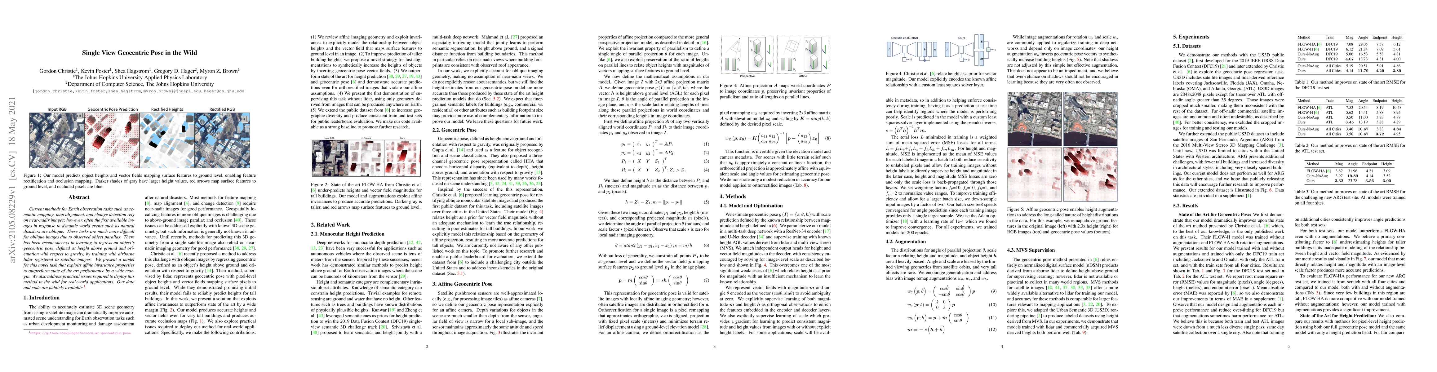 Current methods for Earth observation tasks such as semantic mapping, map alignment, and change detection rely on near-nadir images; however, often the first available images in response to dynamic world events such as natural disasters are oblique. These tasks are much more difficult for oblique images due to observed object parallax. There has been recent success in learning to regress geocentric pose, defined as height above ground and orientation with respect to gravity, by training with airborne lidar registered to satellite images. We present a model for this novel task that exploits affine invariance properties to outperform state of the art performance by a wide margin. We also address practical issues required to deploy this method in the wild for real-world applications. Our data and code are publicly available.