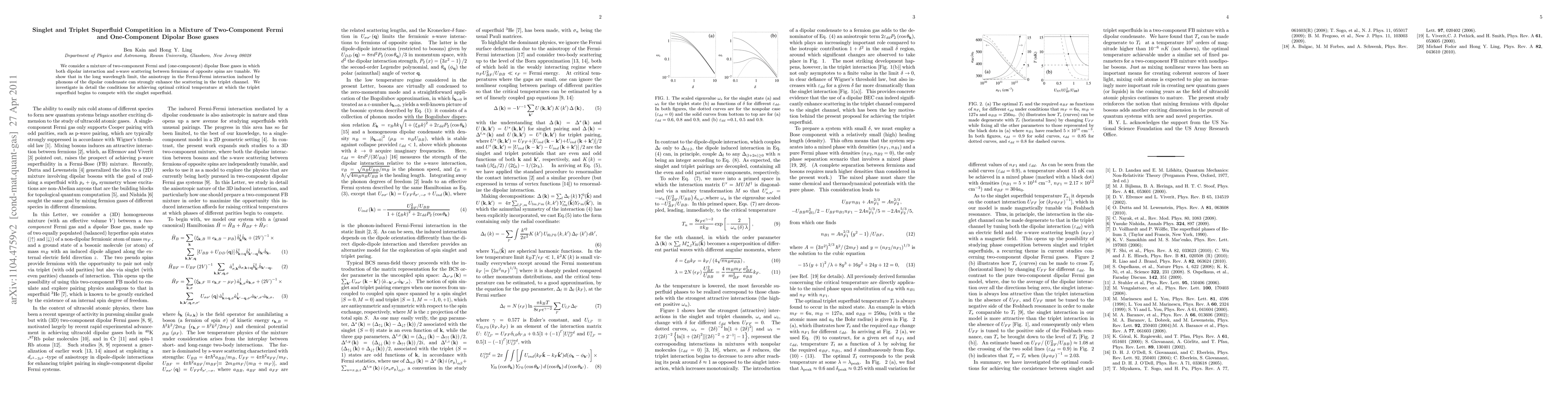 This paper explores the interplay between singlet and triplet superfluid phases in a mixture of two-component Fermi and dipolar Bose gases, demonstrating how dipolar interactions can enhance triplet scattering and investigate the conditions for optimal critical temperature for triplet superfluid competition.