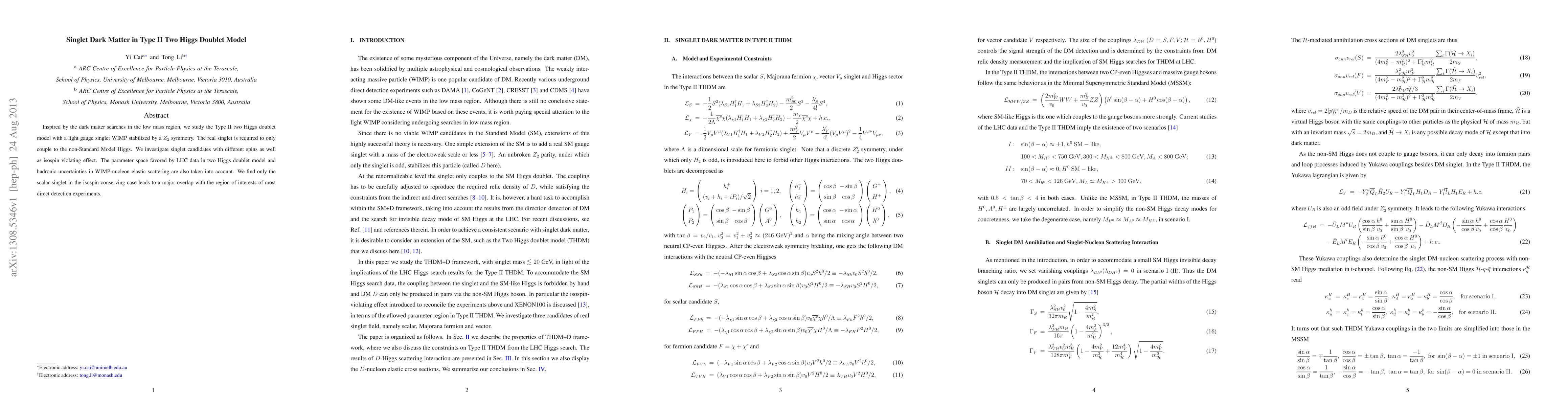 The study examines a Type II two Higgs doublet model featuring a light gauge singlet dark matter candidate stabilized by a Z_2 symmetry, finding that only scalar singlets show significant overlap with direct detection experiments, while considering LHC data and hadronic uncertainties.