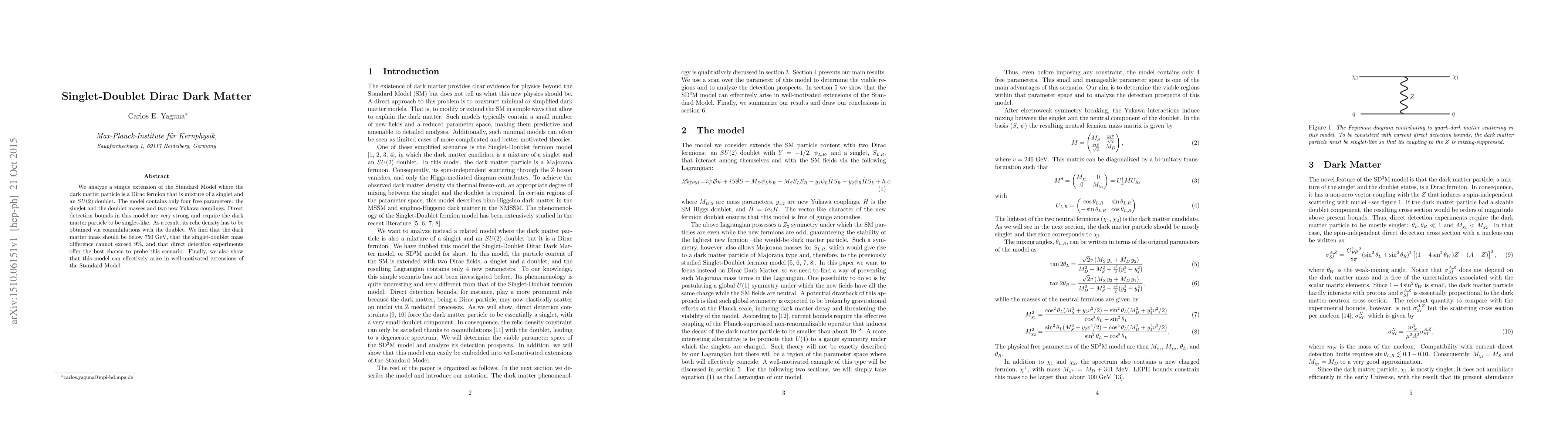 We analyze a simple extension of the Standard Model where the dark matter particle is a Dirac fermion that is mixture of a singlet and an SU(2) doublet. The model contains only four free parameters: the singlet and the doublet masses and two new Yukawa couplings. Direct detection bounds in this model are very strong and require the dark matter particle to be singlet-like. As a result, its relic density has to be obtained via coannihilations with the doublet. We find that the dark matter mass should be below 750 GeV, that the singlet-doublet mass difference cannot exceed 9%, and that direct detection experiments offer the best chance to probe this scenario. Finally, we also show that this model can effectively arise in well-motivated extensions of the Standard Model.