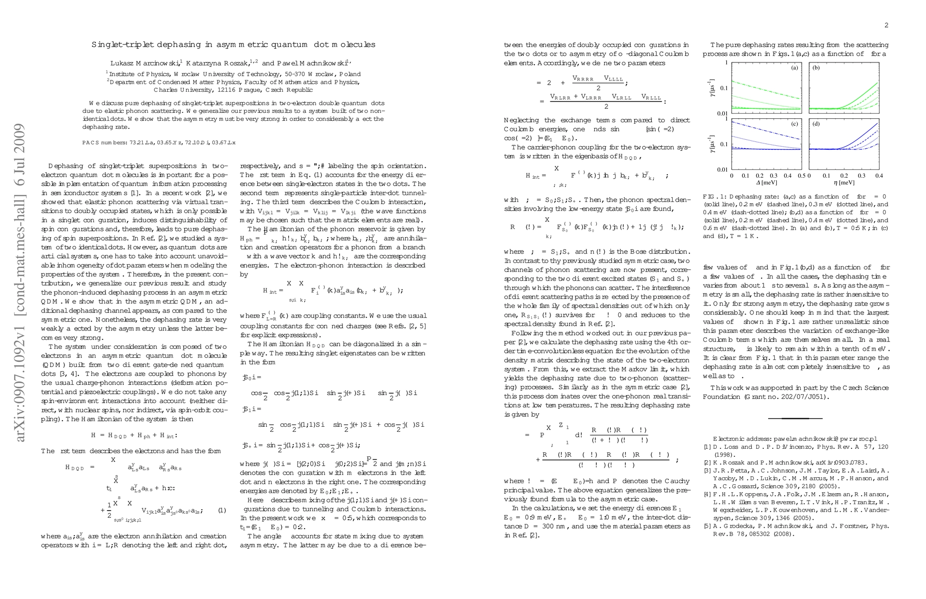 Summary: This paper investigates the pure dephasing of singlet-triplet states in asymmetric double quantum dots caused by elastic phonon scattering, finding that significant asymmetry is required to notably influence the dephasing rate.