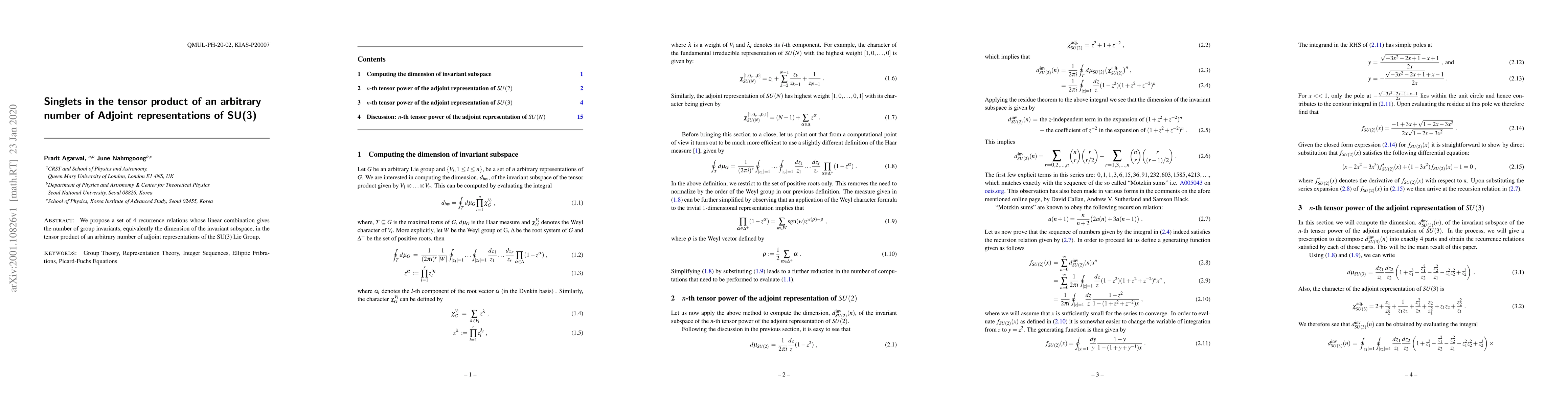We propose a set of 4 recurrence relations whose linear combination gives the number of group invariants, equivalently the dimension of the invariant subspace, in the tensor product of an arbitrary number of adjoint representations of the SU(3) Lie Group.
