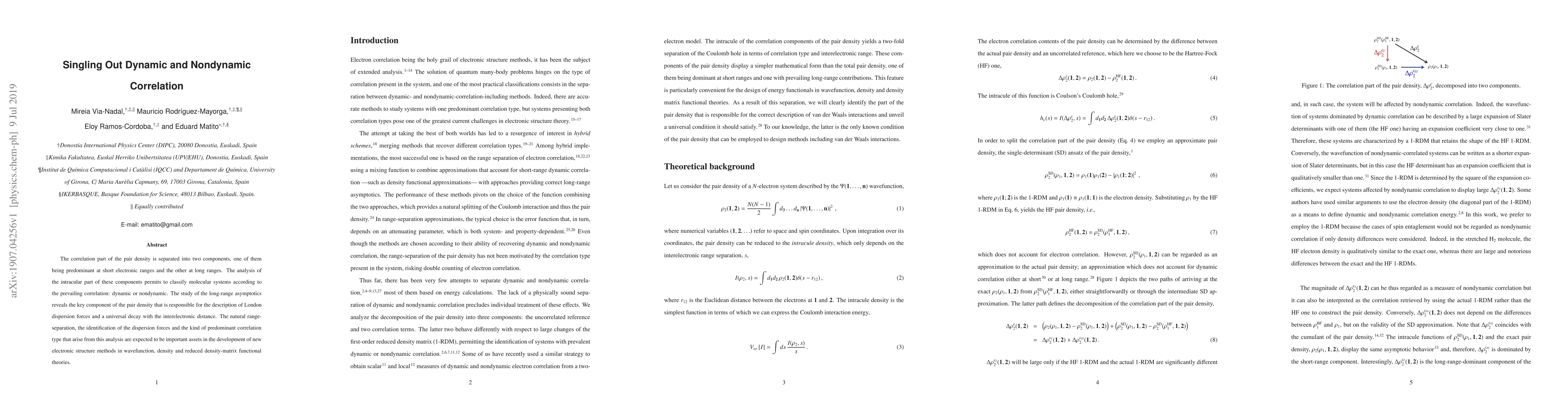 This paper separates the correlation part of pair density into dynamic and nondynamic components, identifying the former as predominant at short ranges and the latter at long ranges. The study reveals the long-range component responsible for London dispersion forces, which could enhance new electronic structure methods in theoretical chemistry.
