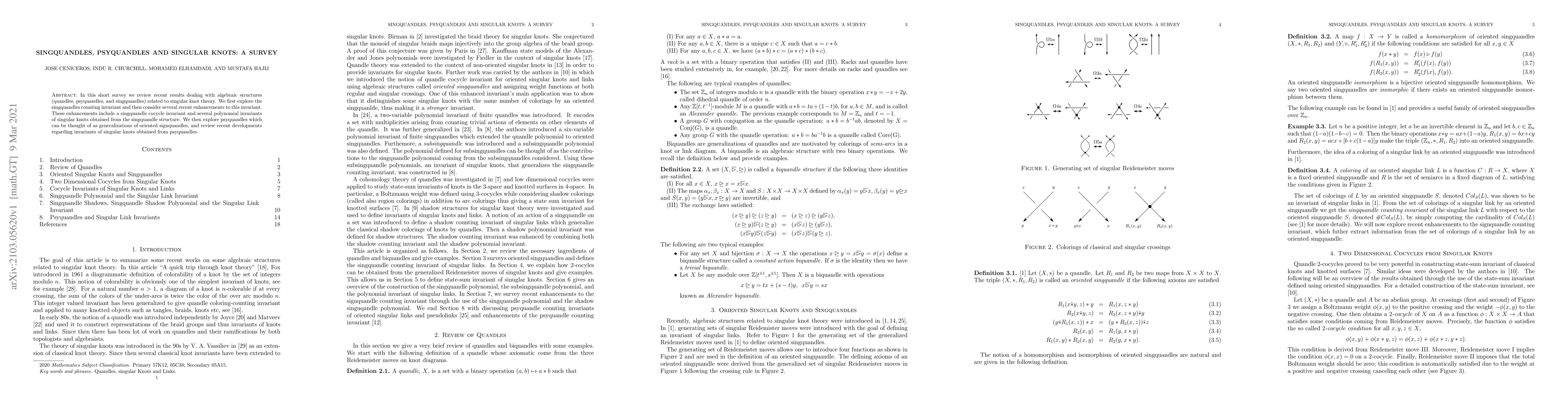 This survey explores algebraic structures known as singquandles, psyquandles, and their applications to singular knot theory, focusing on the singquandle counting invariant, enhancements like the singquandle cocycle invariant, and polynomial invariants. It also reviews psyquandles and recent developments in their use for singular knot invariants.