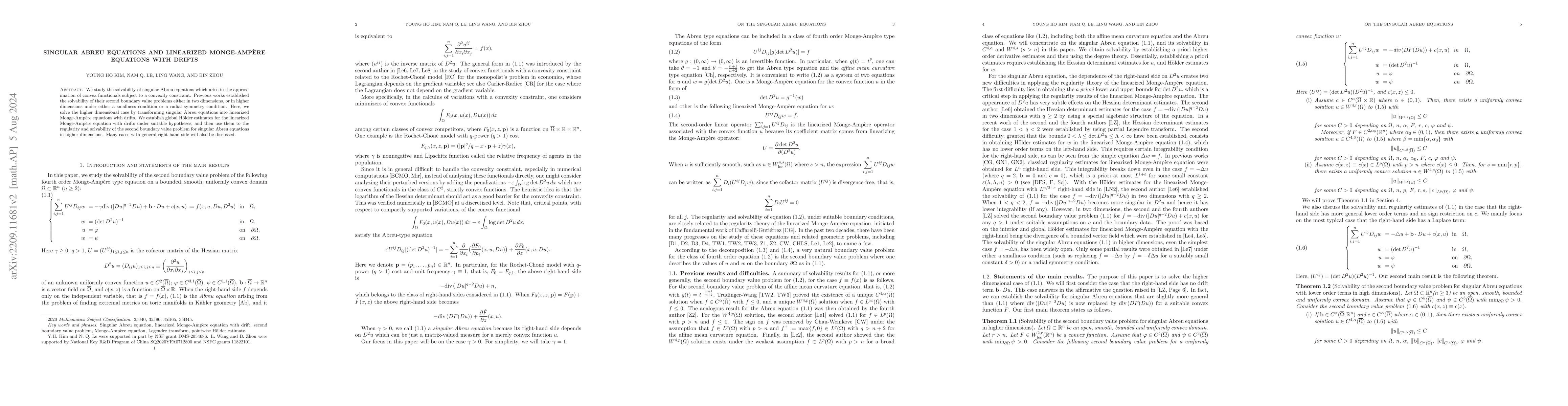 This paper investigates the solvability of singular Abreu equations in higher dimensions, transforming them into linearized Monge-Ampère equations with drifts. It establishes global Hölder estimates for these linearized equations and uses them to prove regularity and solvability of the second boundary value problem for the original Abreu equations.