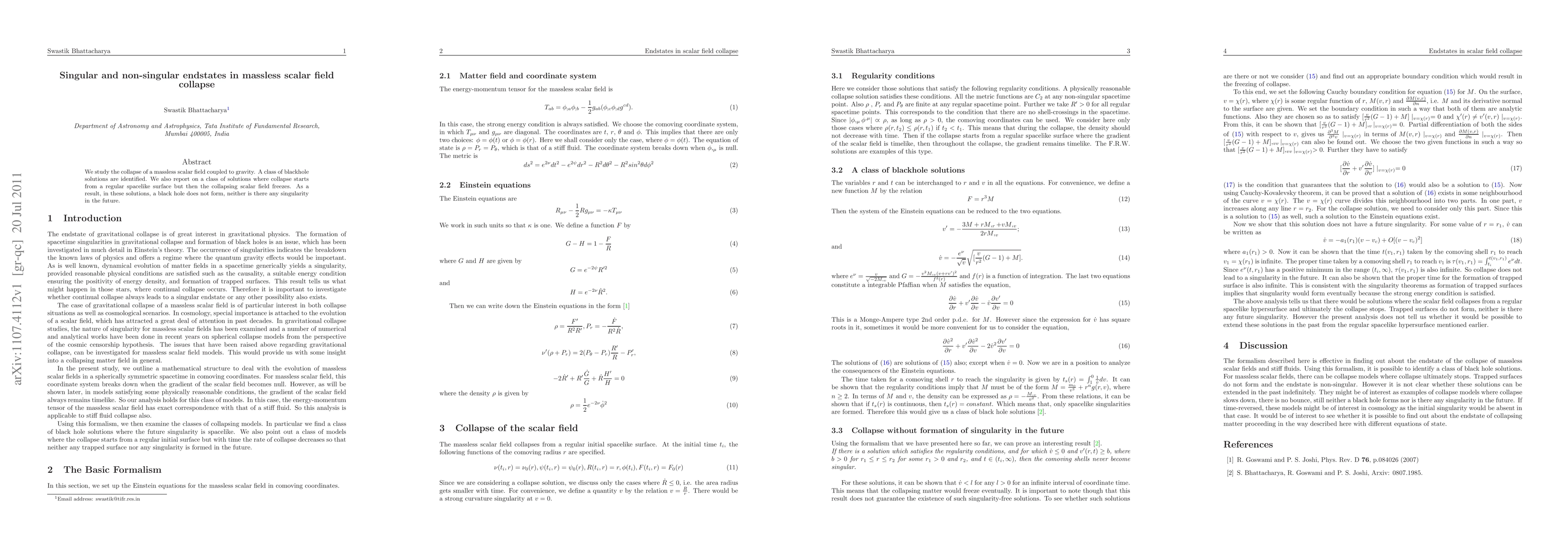 This research paper investigates the collapse of a massless scalar field coupled to gravity, identifying new classes of blackhole solutions and non-singular endstates where no singularity or black hole forms.