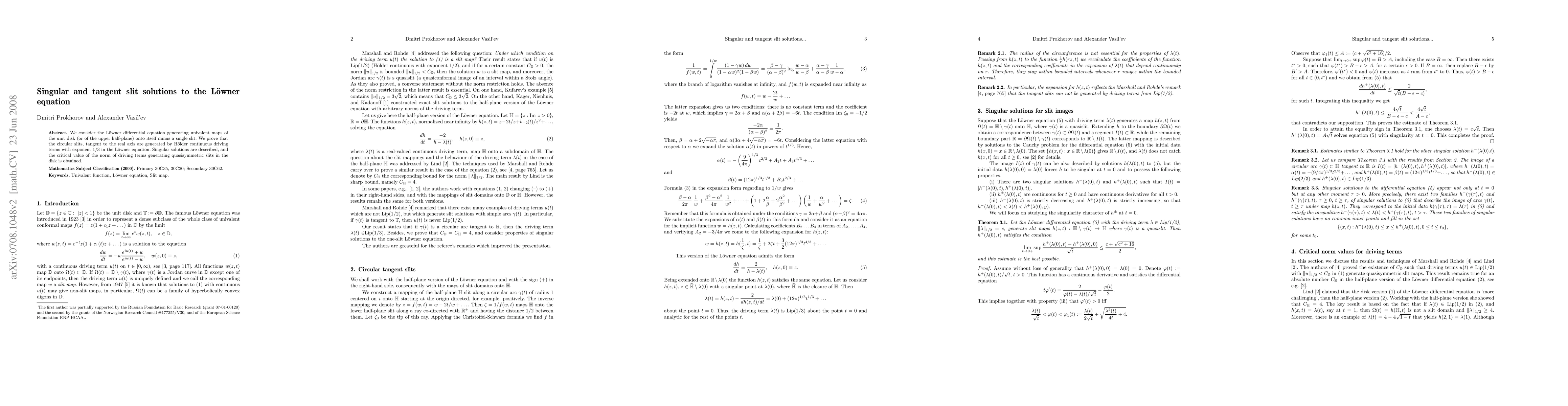 This paper investigates the Loewner equation for univalent maps, proving that circular slits tangent to the real axis arise from H\"older continuous driving terms with an exponent of 1/3. It also characterizes singular solutions and determines the critical norm for generating quasisymmetric slits in the unit disk.