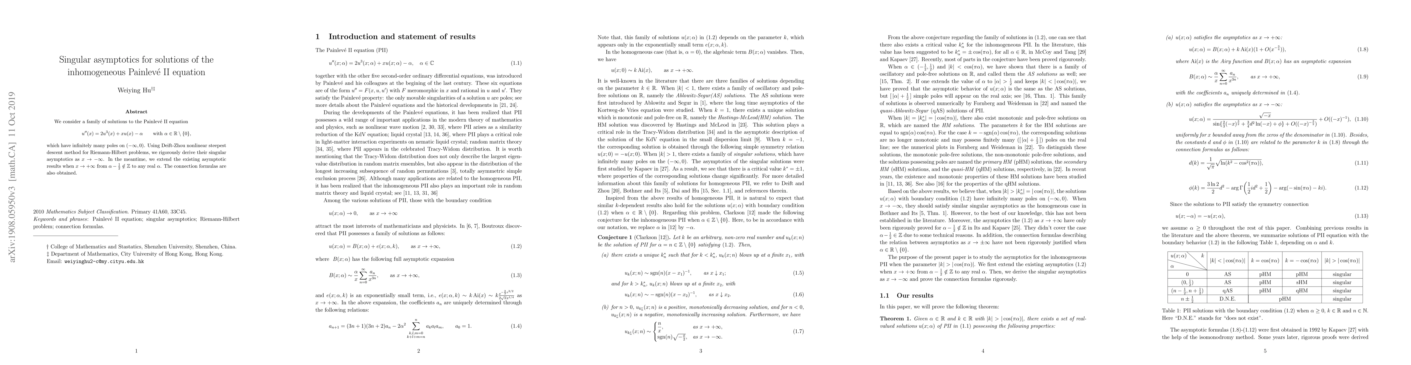 This paper uses Deift-Zhou's nonlinear steepest descent method to derive singular asymptotics for solutions of the inhomogeneous Painlevé II equation as x approaches negative infinity, extending existing results for positive infinity.