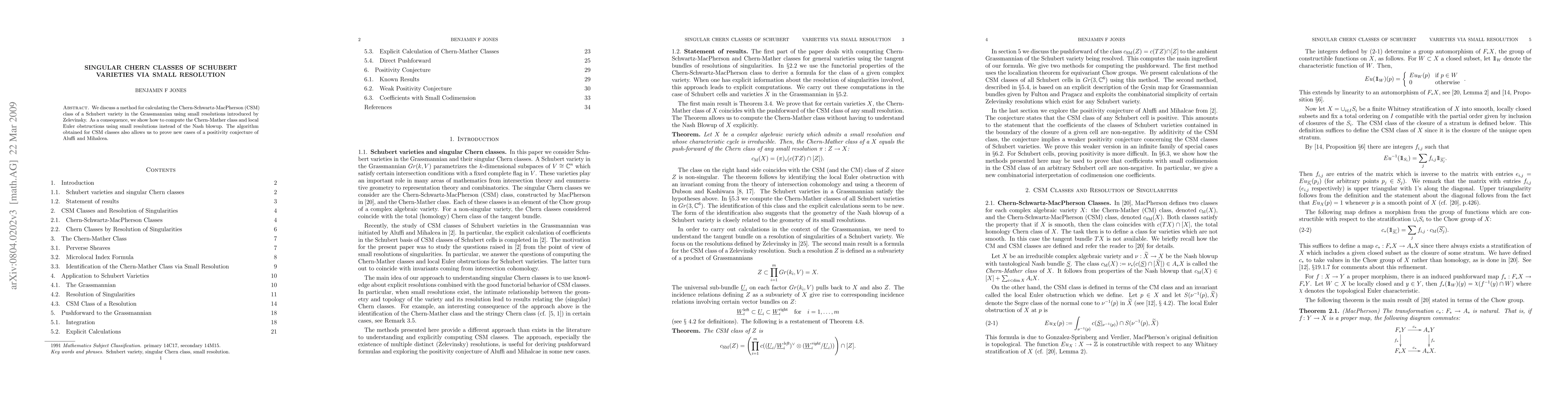 Summary: This paper presents an algorithm to compute the Chern-Schwartz-MacPherson class of Schubert varieties via small resolutions, offering an alternative to Nash blowup methods, and extends this to compute Chern-Mather classes and local Euler obstructions, while also supporting a conjecture on positivity in algebraic geometry.