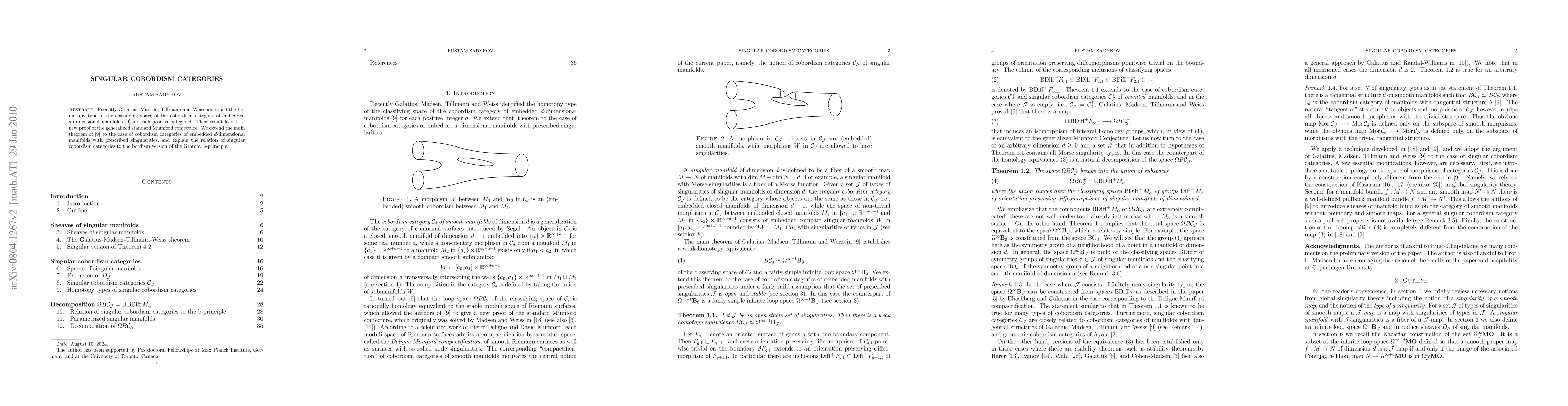 This paper extends the classification of the cobordism category of embedded d-dimensional manifolds by Galatius et al., now including categories with prescribed singularities. It also explores the connection between these singular cobordism categories and the bordism version of the Gromov h-principle.