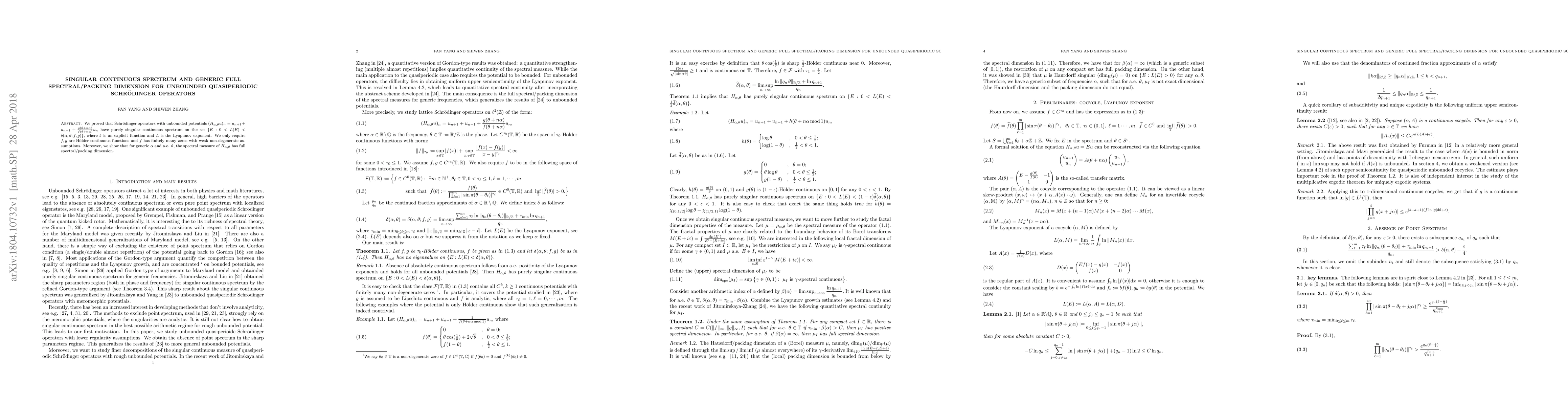 This paper proves that unbounded quasiperiodic Schrödinger operators exhibit purely singular continuous spectrum under mild conditions on the potential functions. It also demonstrates that for most values of $\alpha$ and almost every $\theta$, the spectral measure of these operators has full spectral/packing dimension.