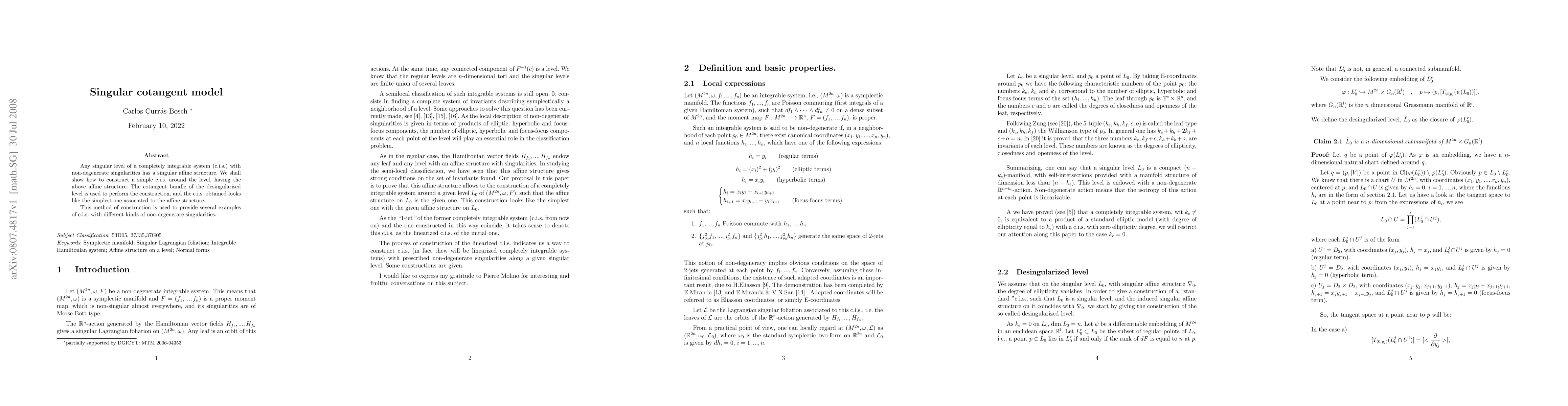 Any singular level of a completely integrable system (c.i.s.) with non-degenerate singularities has a singular affine structure. We shall show how to construct a simple c.i.s. around the level, having the above affine structure. The cotangent budle of the desingularised level is used to perform the construction, and the c.i.s. obtained looks like the simplest one associated to the affine structure. This method of construction is used to provide several examples of c.i.s. with different kinds of non-degenerate singularities.