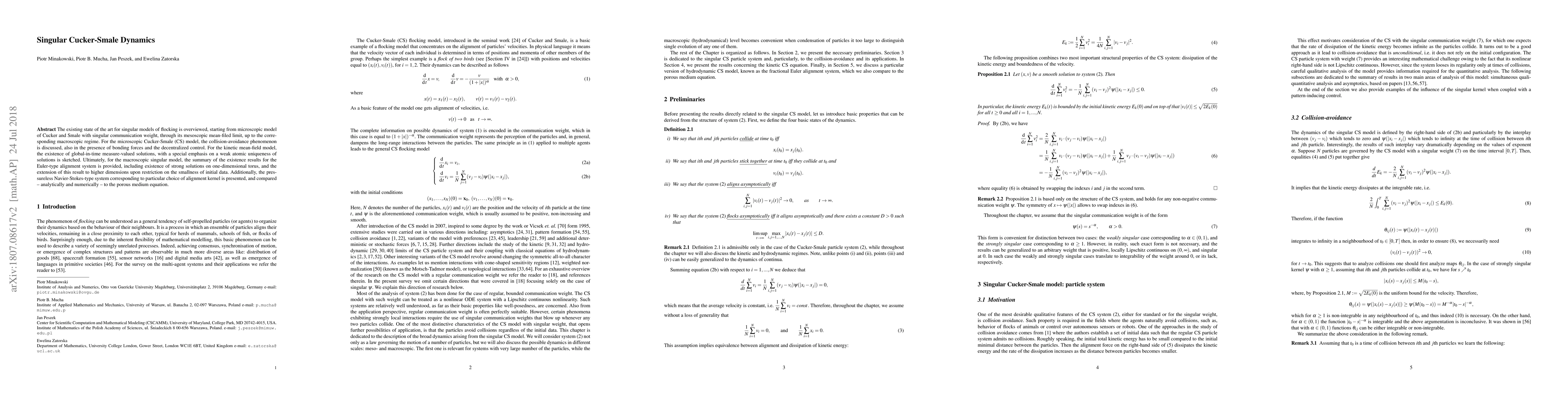 This paper explores the existence of solutions for a singular Cucker-Smale dynamics model, which simulates flocking behavior in birds and other animals, and compares it to the porous medium equation and Navier-Stokes-type system.