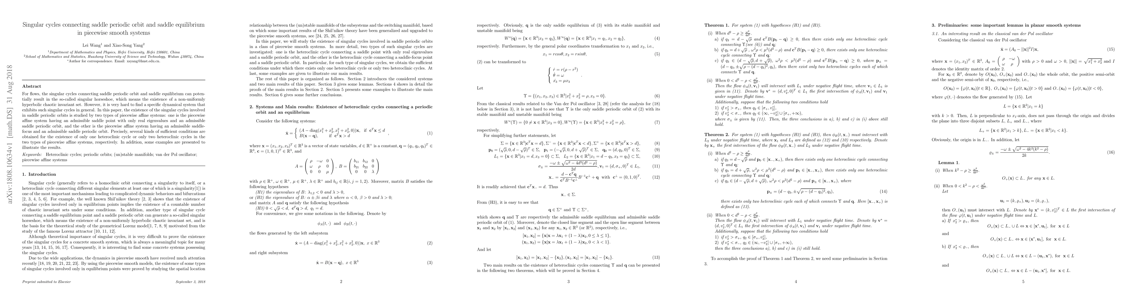 This paper investigates singular cycles in piecewise affine systems connecting saddle periodic orbits and saddle equilibria, focusing on their potential to create non-uniformly hyperbolic chaotic invariant sets. Sufficient conditions for the existence of heteroclinic cycles in two types of systems are derived, and examples are provided to demonstrate these findings.