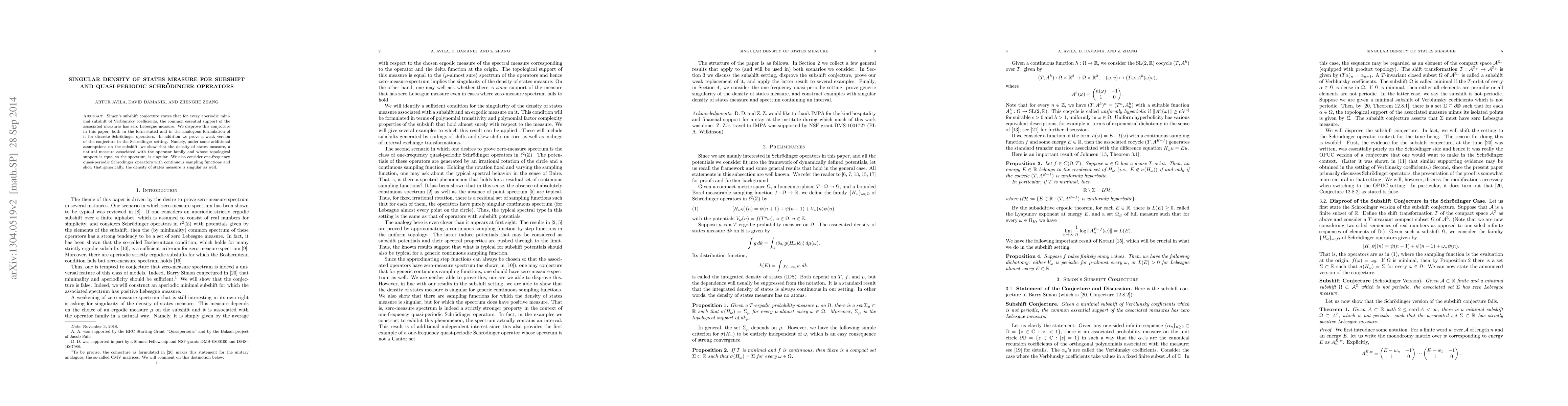 Simon's subshift conjecture states that for every aperiodic minimal subshift of Verblunsky coefficients, the common essential support of the associated measures has zero Lebesgue measure. We disprove this conjecture in this paper, both in the form stated and in the analogous formulation of it for discrete Schr\"odinger operators. In addition we prove a weak version of the conjecture in the Schr\"odinger setting. Namely, under some additional assumptions on the subshift, we show that the density of states measure, a natural measure associated with the operator family and whose topological support is equal to the spectrum, is singular. We also consider one-frequency quasi-periodic Schr\"odinger operators with continuous sampling functions and show that generically, the density of states measure is singular as well.