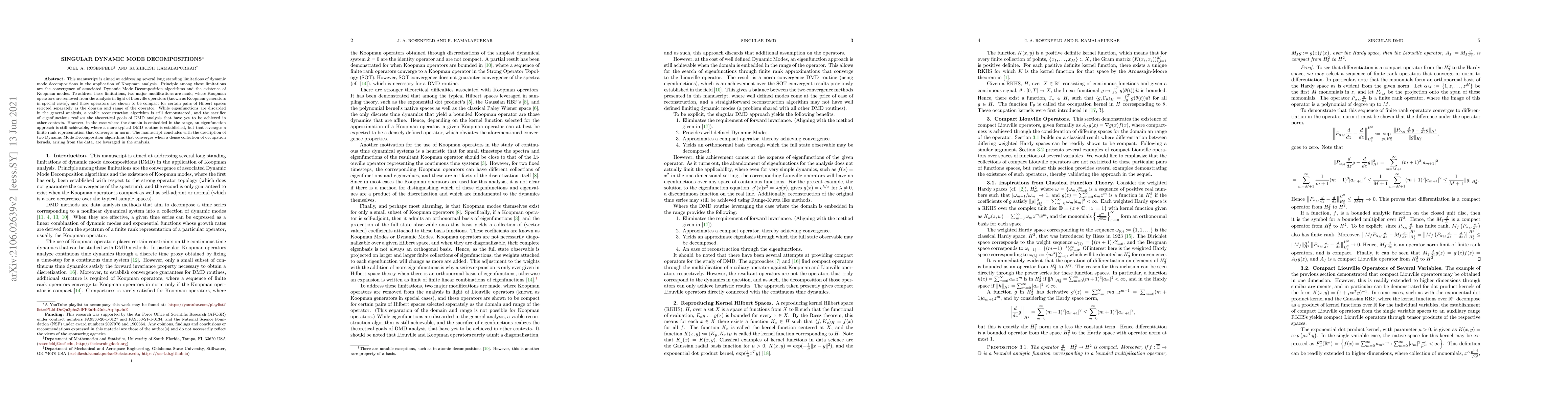 This paper proposes modifications to Dynamic Mode Decomposition (DMD) to improve convergence and address limitations in Koopman analysis, replacing Koopman operators with Liouville operators and demonstrating compact operator properties. It introduces a reconstruction algorithm that sacrifices eigenfunctions for theoretical goals, while still allowing for eigenfunction approaches in specific cases.