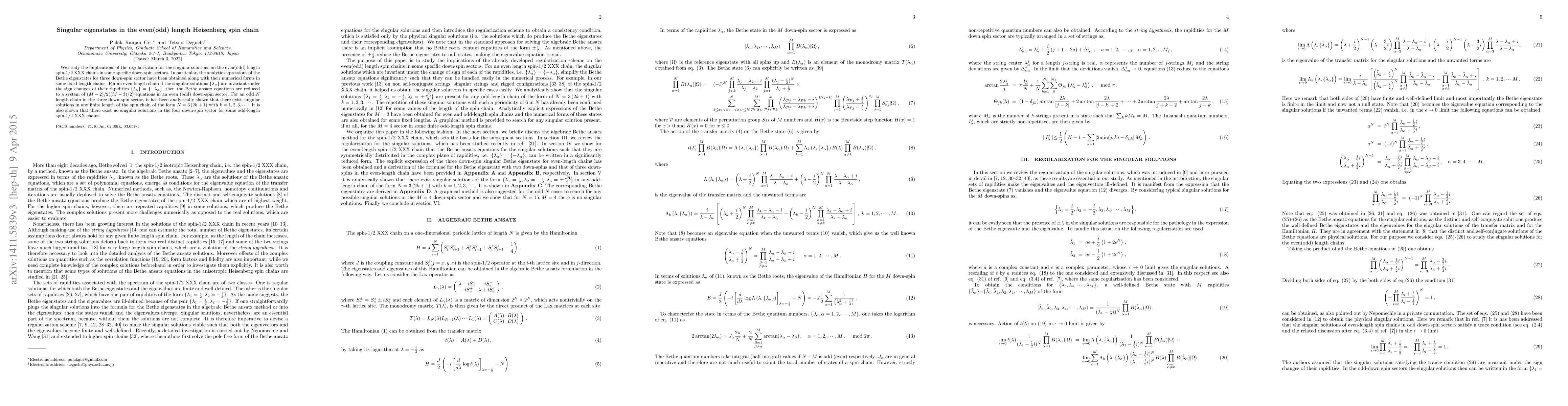 This paper investigates singular eigenstates in the even and odd length spin-1/2 XXX chains, deriving analytic expressions for Bethe eigenstates in specific down-spin sectors and showing that singular solutions exist under certain conditions for even and odd chain lengths.