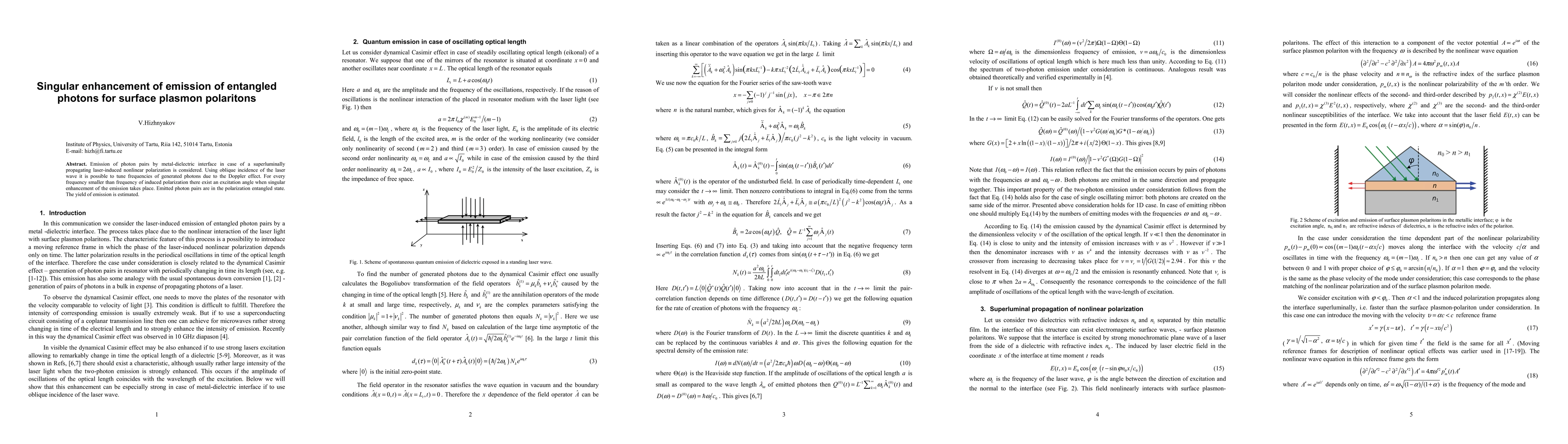 This research explores the enhancement of entangled photon pair emission at a metal-dielectric interface under superluminal laser-induced nonlinear polarization, revealing a singular enhancement angle for specific frequencies due to the Doppler effect. The emitted photon pairs are in a polarization-entangled state, with the yield of emission quantified.