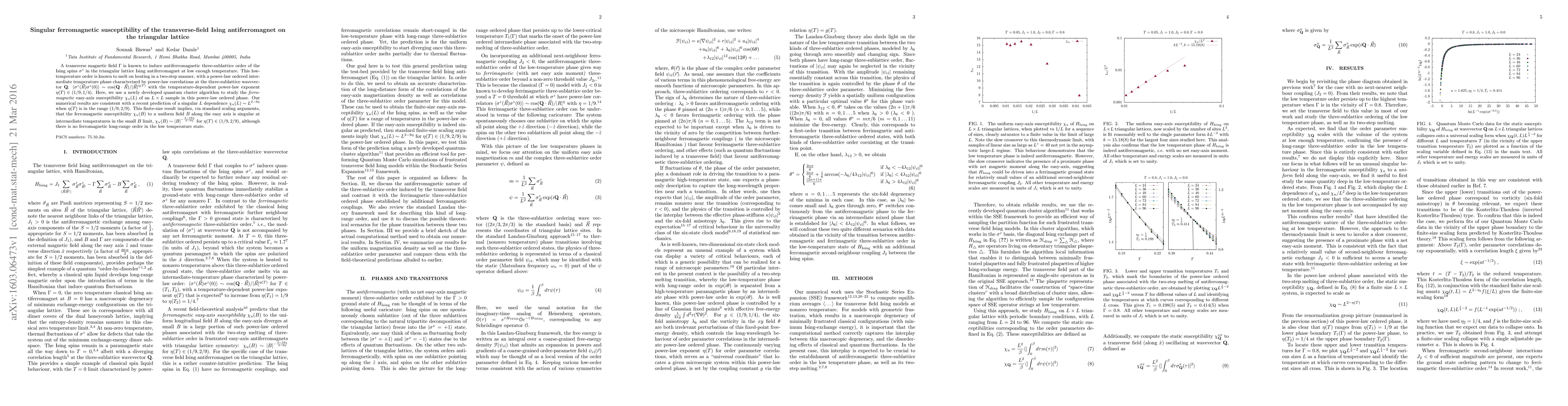 Researchers used a new algorithm to study the ferromagnetic susceptibility of an Ising antiferromagnet in a triangular lattice under a transverse field. Their results show that the susceptibility is singular at intermediate temperatures, implying a new type of phase transition.