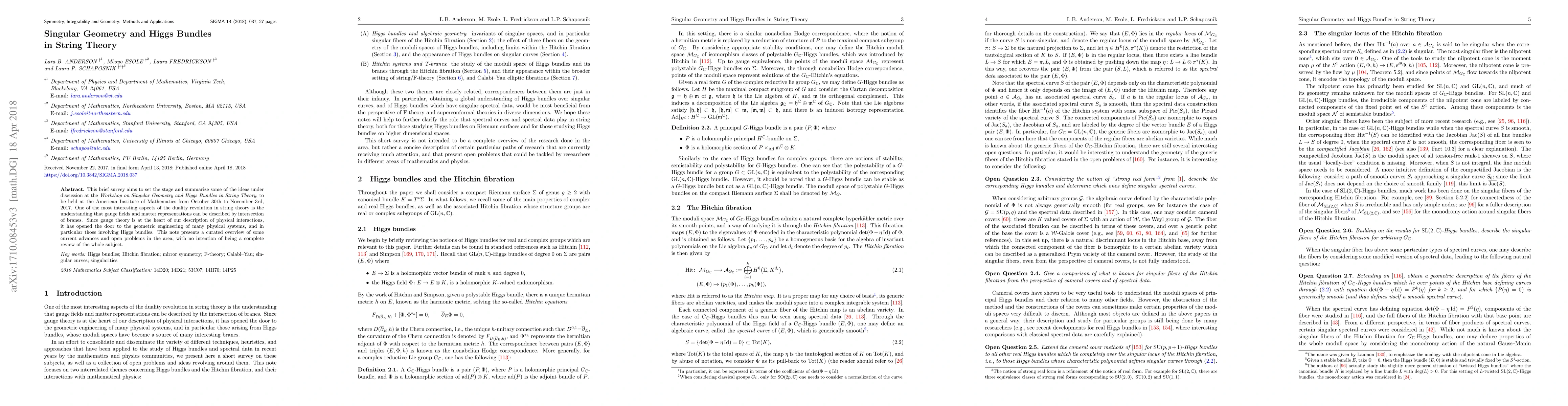 The paper presents a detailed examination of the interplay between singular geometry, Higgs bundles, and string theory, highlighting the role of branes and their transformations under mirror symmetry.