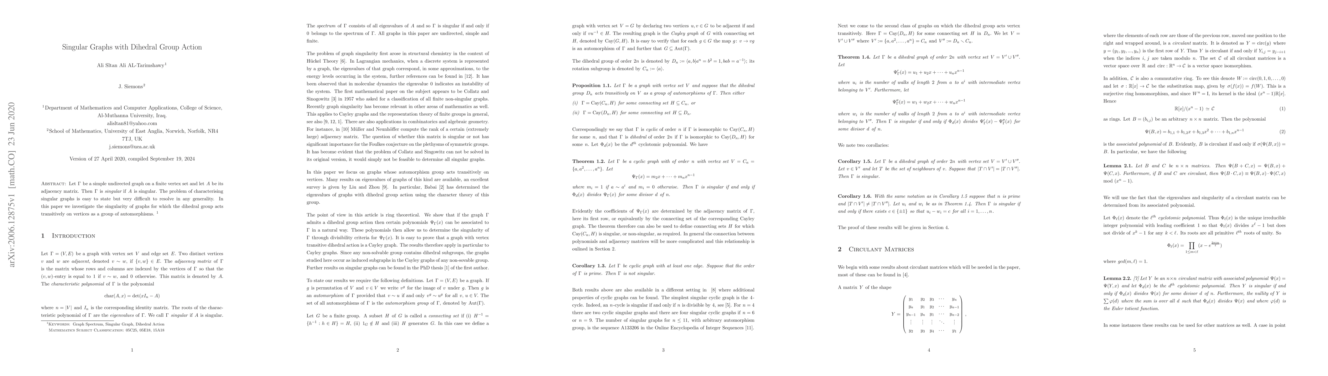 Let $\Gamma$ be a simple undirected graph on a finite vertex set and let $A$ be its adjacency matrix. Then $\Gamma$ is {\it singular} if $A$ is singular. The problem of characterising singular graphs is easy to state but very difficult to resolve in any generality. In this paper we investigate the singularity of graphs for which the dihedral group acts transitively on vertices as a group of automorphisms.