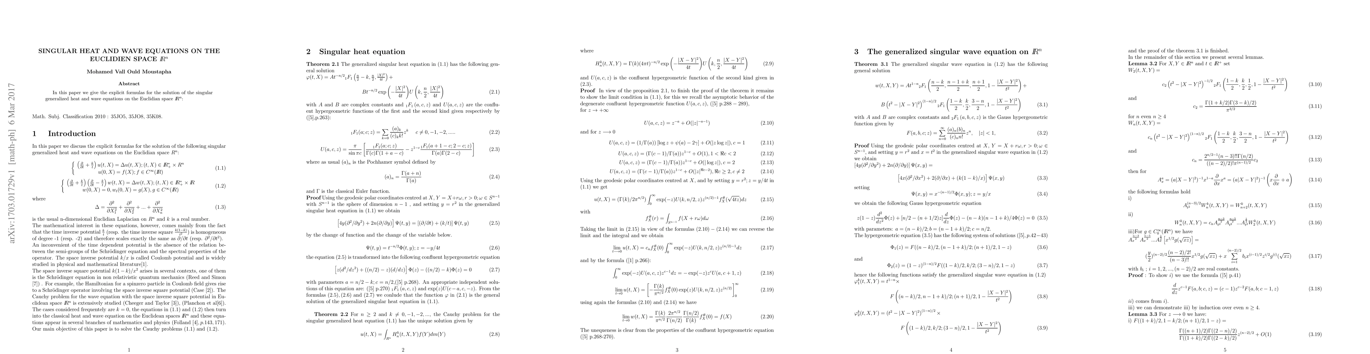 In this paper we give the explicit formulas for the solution of the singular generalized heat and wave equations on the Euclidian space $\R^n$.