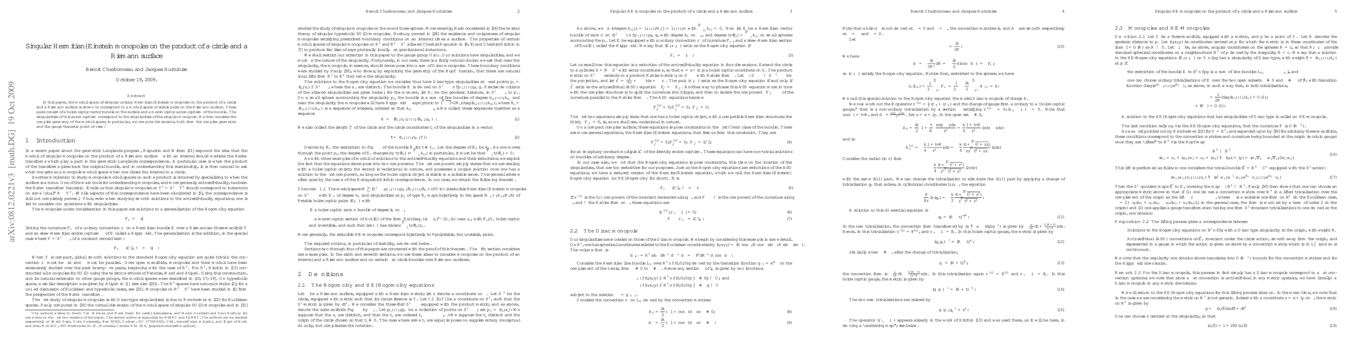 In this paper, the moduli space of singular unitary Hermitian--Einstein monopoles on the product of a circle and a Riemann surface is shown to correspond to a moduli space of stable pairs on the Riemann surface. These pairs consist of a holomorphic vector bundle on the surface and a meromorphic automorphism of the bundle. The singularities of this automorphism correspond to the singularities of the singular monopole. We then consider the complex geometry of the moduli space; in particular, we compute dimensions, both from the complex geometric and the gauge theoretic point of view.