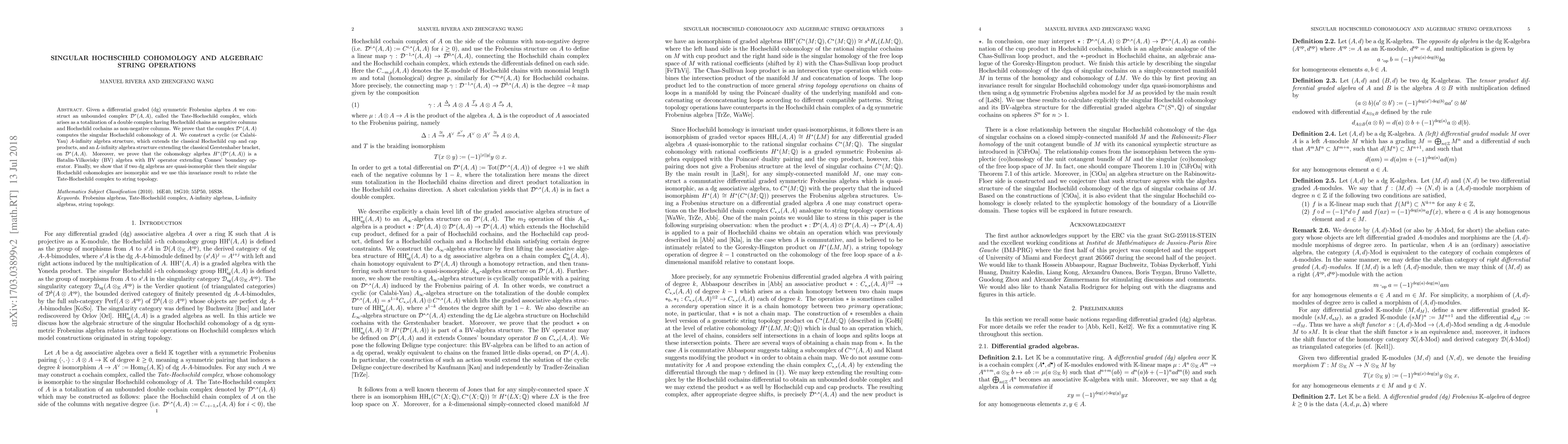 The paper introduces and analyzes the Tate-Hochschild complex D*(A,A) and its associated A∞ and L∞ algebra structures, significantly advancing the understanding of singular Hochschild cohomology.