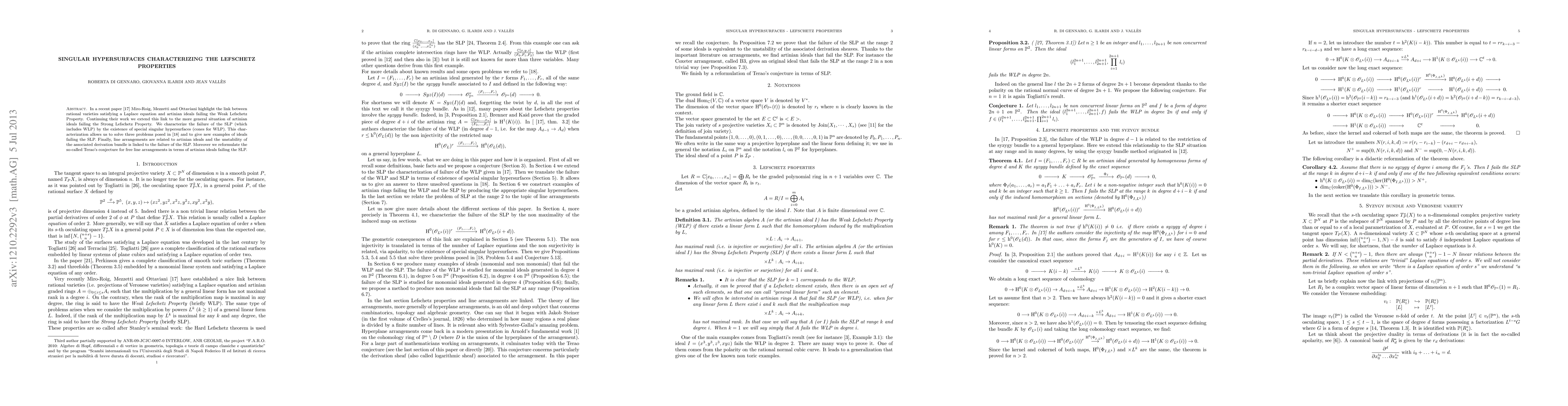 In the paper untitled "Laplace equations and the Weak Lefschetz Property" the authors highlight the link between rational varieties satisfying a Laplace equation and artinian ideals that fail the Weak Lefschetz property. Continuing their work we extend this link to the more general situation of artinian ideals failing the Strong Lefschetz Property. We characterize the failure of SLP (that includes WLP) by the existence of special singular hypersurfaces (cones for WLP). This characterization allows us to solve three problems posed by Migliore and Nagel and to give new examples of ideals failing the SLP. Finally, line arrangements are related to artinian ideals and the unstability of the associated derivation bundle is linked with the failure of SLP. Moreover we reformulate the so-called Terao's conjecture for free line arrangements in terms of artinian ideals failing the SLP.