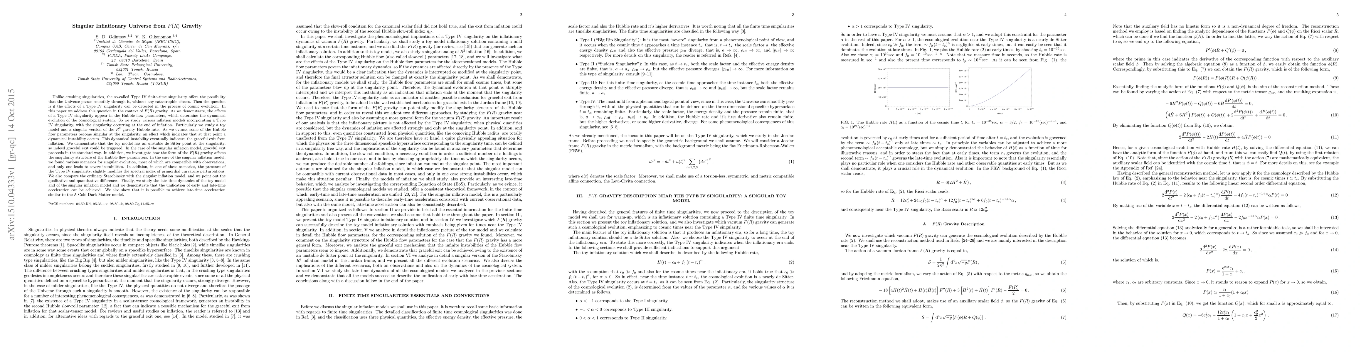 A new theory of gravity suggests that a Type IV singularity in the universe could lead to a graceful exit from inflation, allowing for smooth evolution without catastrophic effects. The theory also predicts late-time acceleration similar to dark matter models.