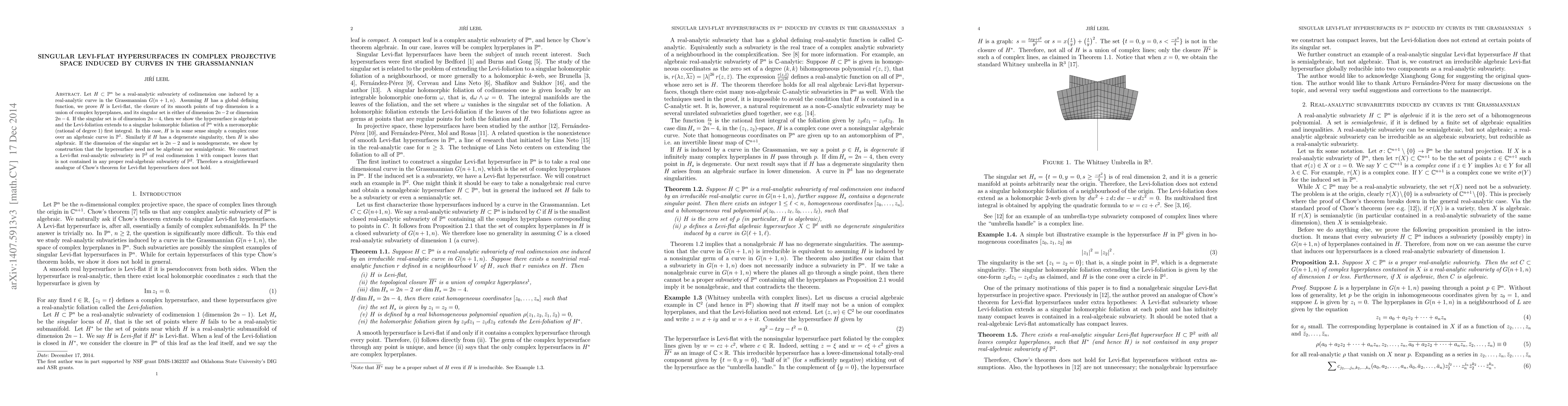 Let $H \subset {\mathbb P}^n$ be a real-analytic subvariety of codimension one induced by a real-analytic curve in the Grassmannian $G(n+1,n)$. Assuming $H$ has a global defining function, we prove $H$ is Levi-flat, the closure of its smooth points of top dimension is a union of complex hyperplanes, and its singular set is either of dimension $2n-2$ or dimension $2n-4$. If the singular set is of dimension $2n-4$, then we show the hypersurface is algebraic and the Levi-foliation extends to a singular holomorphic foliation of ${\mathbb P}^n$ with a meromorphic (rational of degree 1) first integral. In this case, $H$ is in some sense simply a complex cone over an algebraic curve in ${\mathbb P}^1$. Similarly if $H$ has a degenerate singularity, then $H$ is also algebraic. If the dimension of the singular set is $2n-2$ and is nondegenerate, we show by construction that the hypersurface need not be algebraic nor semialgebraic. We construct a Levi-flat real-analytic subvariety in ${\mathbb P}^2$ of real codimension 1 with compact leaves that is not contained in any proper real-algebraic subvariety of ${\mathbb P}^2$. Therefore a straightforward analogue of Chow's theorem for Levi-flat hypersurfaces does not hold.