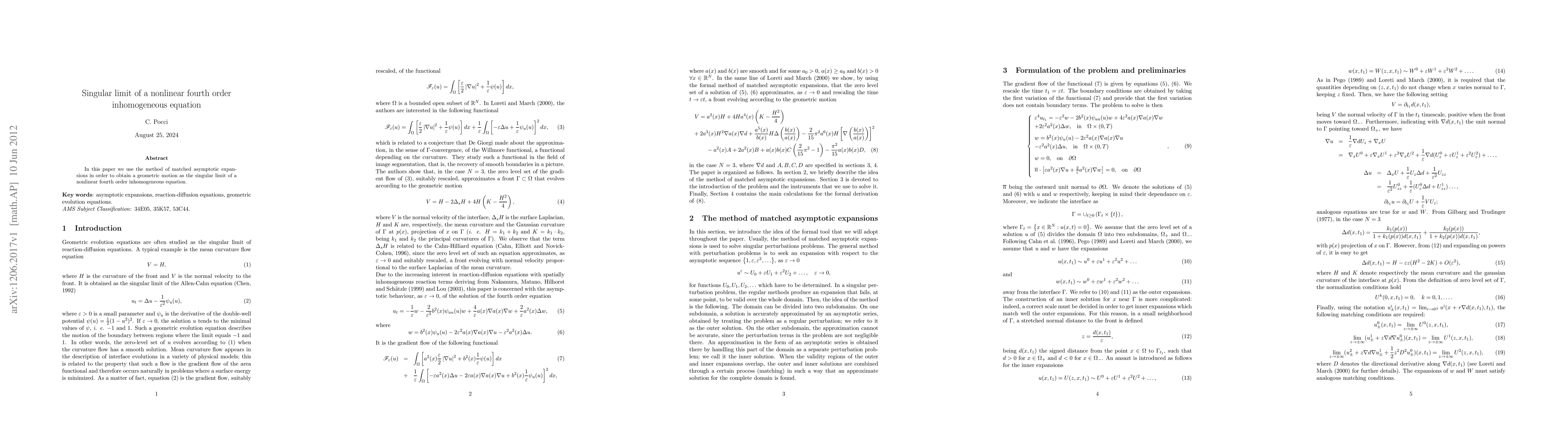 This paper uses matched asymptotic expansions to find a geometric motion as the singular limit of a nonlinear fourth-order inhomogeneous equation, focusing on key findings for understanding this phenomenon.