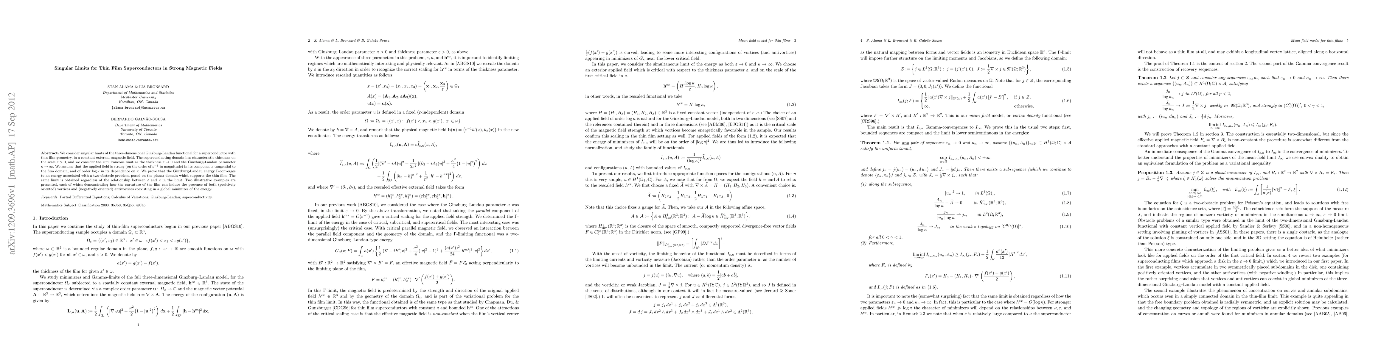 We consider singular limits of the three-dimensional Ginzburg-Landau functional for a superconductor with thin-film geometry, in a constant external magnetic field. The superconducting domain has characteristic thickness on the scale $\eps>0$, and we consider the simultaneous limit as the thickness $\eps\rightarrow 0$ and the Ginzburg-Landau parameter $\kappa\rightarrow\infty$. We assume that the applied field is strong (on the order of $\eps^{-1}$ in magnitude) in its components tangential to the film domain, and of order $\log\kappa$ in its dependence on $\kappa$. We prove that the Ginzburg-Landau energy $\Gamma$-converges to an energy associated with a two-obstacle problem, posed on the planar domain which supports the thin film. The same limit is obtained regardless of the relationship between $\eps$ and $\kappa$ in the limit. Two illustrative examples are presented, each of which demonstrating how the curvature of the film can induce the presence of both (positively oriented) vortices and (negatively oriented) antivortices coexisting in a global minimizer of the energy.