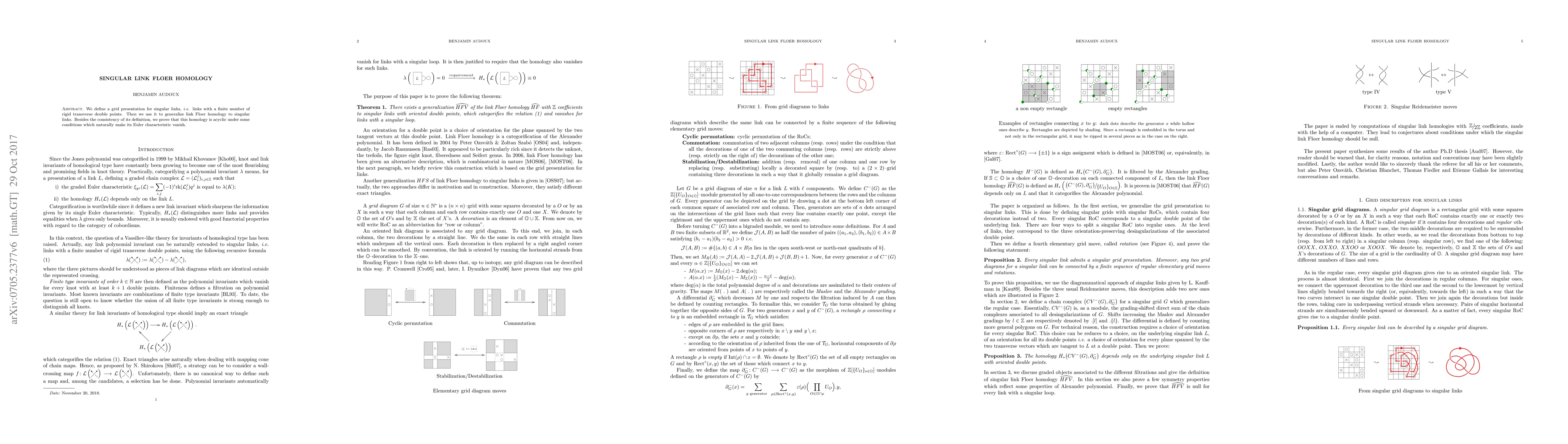 We define a grid presentation for singular links i.e. links with a finite number of rigid transverse double points. Then we use it to generalize link Floer homology to singular links. Besides the consistency of its definition, we prove that this homology is acyclic under some conditions which naturally make its Euler characteristic vanish.