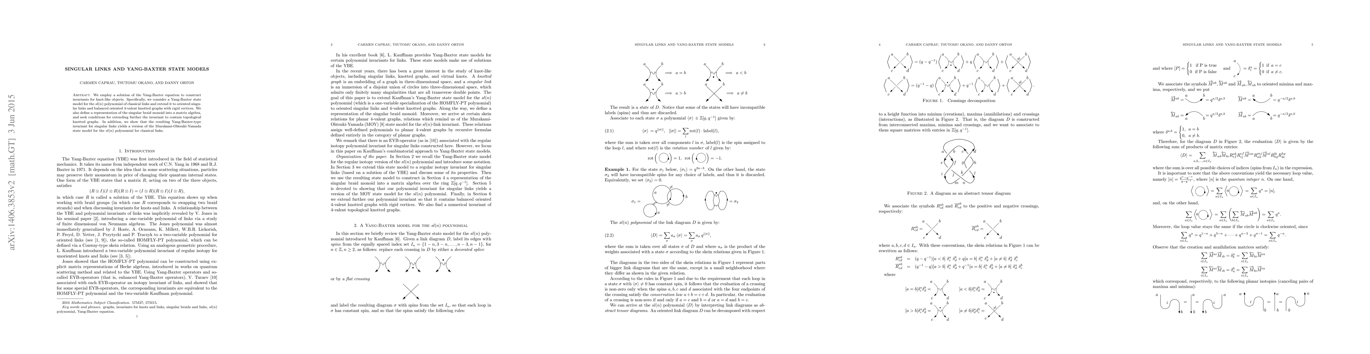 We employ a solution of the Yang-Baxter equation to construct invariants for knot-like objects. Specifically, we consider a Yang-Baxter state model for the sl(n) polynomial of classical links and extend it to oriented singular links and balanced oriented 4-valent knotted graphs with rigid vertices. We also define a representation of the singular braid monoid into a matrix algebra, and seek conditions for extending further the invariant to contain topological knotted graphs. In addition, we show that the resulting Yang-Baxter-type invariant for singular links yields a version of the Murakami-Ohtsuki-Yamada state model for the sl(n) polynomial for classical links.